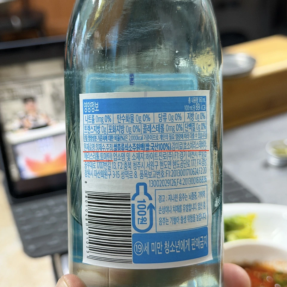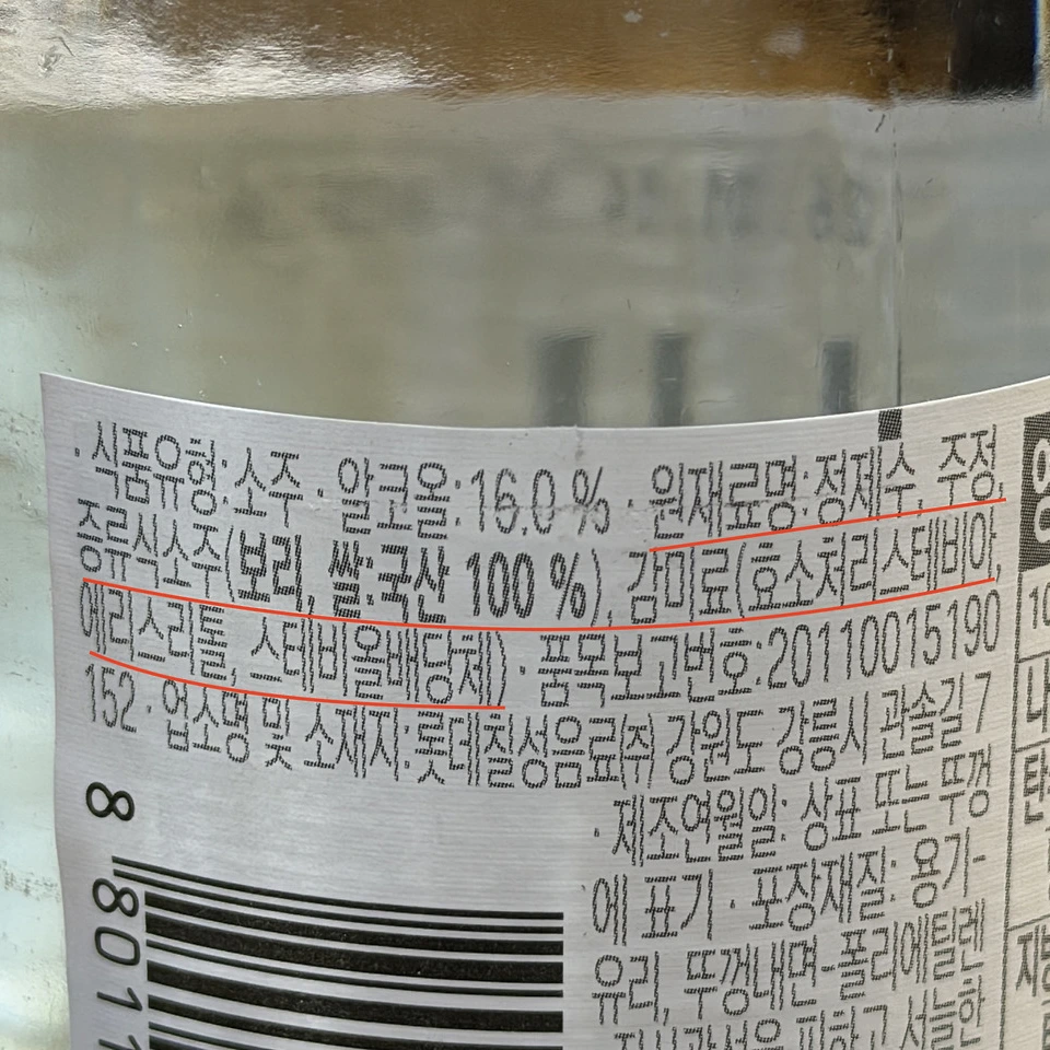 얼른 뒤 라벨을 보니, 진짜네? 그날은 그냥 기분 좋게 하하호호하며 넘어가기는 했다. 그런데 갑자기 궁금해졌다. 요즘 희석식 소주 제조 방법이 좀 바뀐 건가? 서울로 돌아와 하나씩 확인해 보기 시작했다.