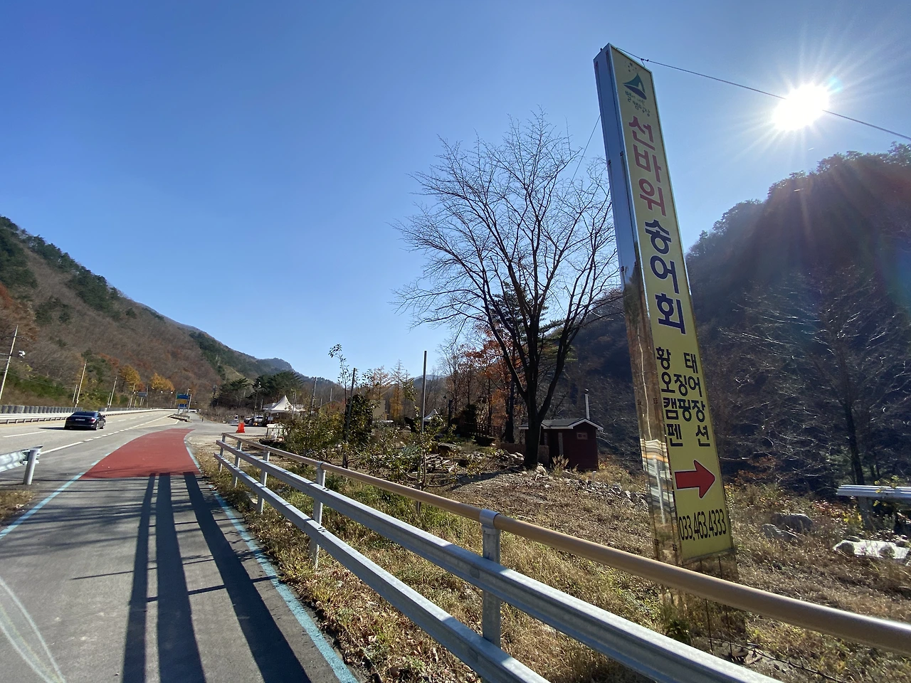 원통 휴게소에서 10분 쉰 후 30분만 더 가면 용대 사거리에 도착한다. 이제 미시령 옛길 자전거 안내 팻말을 잘 보면서 미시령 입구를 향해 걸어가자. 여행을 처음 기획했던 2015년쯤에는 자동차 전용 도로의 차도 갓길을 15분 정도 지나야 해 위험했지만 지금은 자전거 전용 도로/트래킹 도로가 완공되어 안전하게 걸을 수 있다. 용대리 입구서 한 40분쯤 걸어 나가면 선바위 휴게소라는 사설 휴게소가 나오는데, 배가 아프지 않더라도 반드시 이곳에서 큰 일을 한 번 정도 치르도록 하자. 그 이유도 잠시 후 공개. 이제 조금만 더 걸으면 본격적으로 미시령 산행이 시작되는 입구가 나온다.