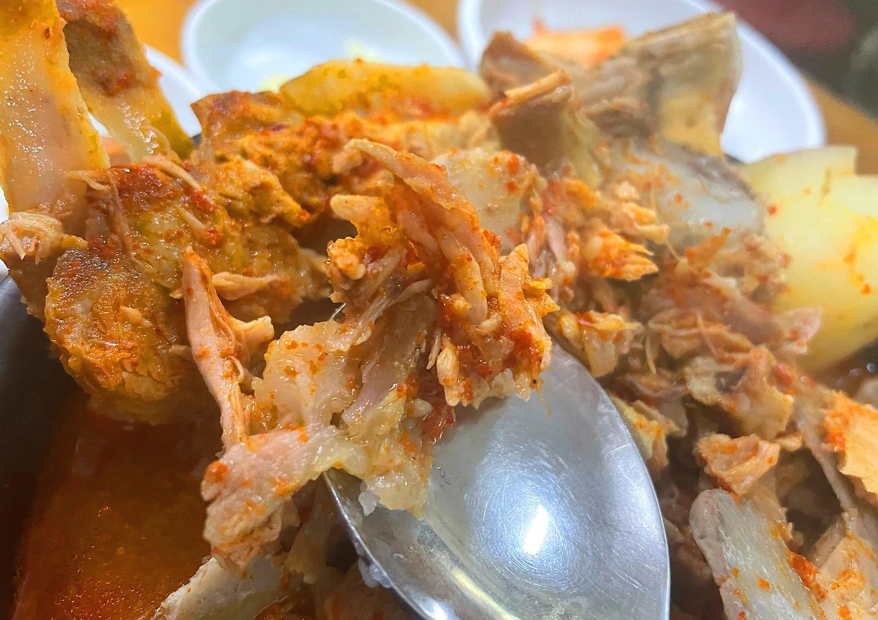 일단 뚝배기가 작으니 밑접시를 청해 뼈를 옮겨담고 젓가락으로 이리저리 후벼보자. 아무래도 계속 팔팔 끓는 솥에서 죙일 끓던 뼈라 나뭇가지를 흔들면 붙은 눈송이가 떨어지는 것처럼 뼈에 붙은 살들이 후두둑 떨어진다. 크게 두 덩이 정도가 뚝배기에 담겨 있는데 그 고기들을 떨어내면 밥을 안말아도 뚝배기에 고기가 그득해진다. 이걸 반찬삼아 먹는 것도 괜찮지만 지금부터 이렇게 해보도록.