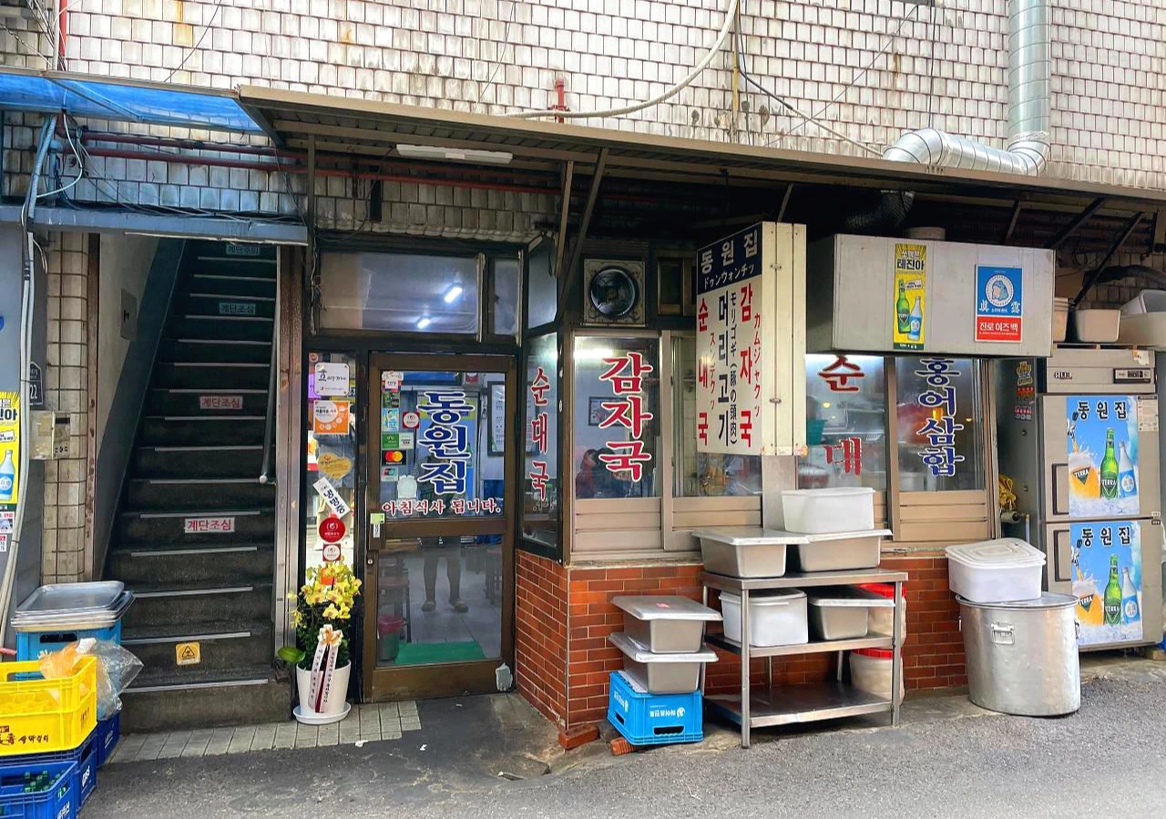을지로 ‘동원집’은 뻐다귀 해장국이 매력적인 30년도 더된 노포다. ‘참새가 방아간을 그냥 지나갈 수 있냐’는 말이 있지? 을지로 부근에 일이 있으면 동원집은 꼭 들러야 한다. 순대국이나 접시순대, 수육도 맛있지만 이 집의 트레이드마크는 ‘감자국’이라 부르는 뼈다귀 해장국. 주문하자마자 5분도 안돼서 보글보글 끓인 감자국이 턱 놓여진다.