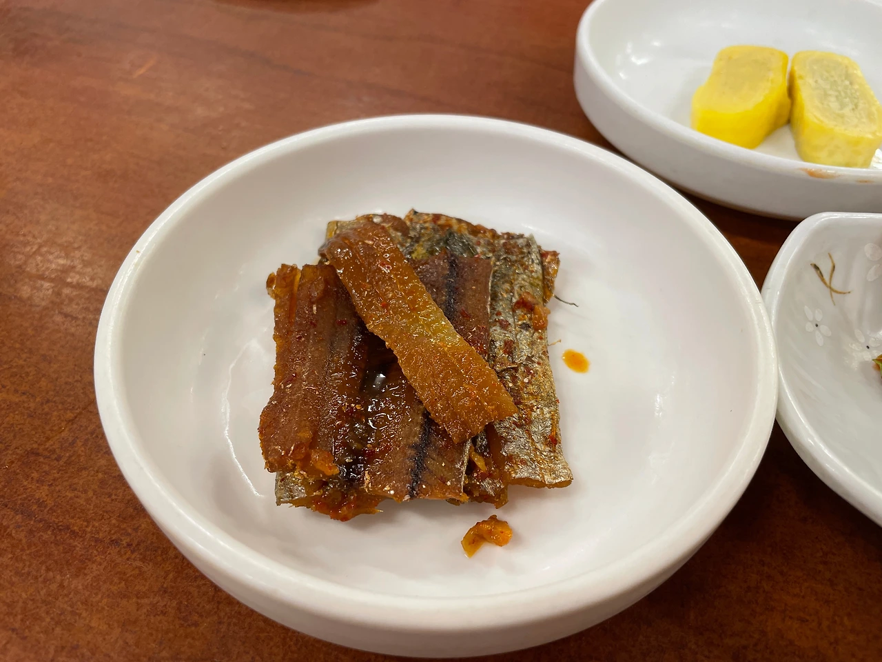 여기서 가장 신기한 건 ‘풀치’ 조림이다. 일하시는 분께 물어보니 풀치는 어린 갈치를 염장해 굴비처럼 말린 녀석이란다. 이 녀석, 꼭 쥐포 같은 맛인데 식감은 훨씬 부드럽고 감칠맛도 좋다. 오늘 주인공은 아니었지만 재첩 덮밥과 먹으면 달착지근하니 괜찮은… 아니 좋은 맛. (사실 간절히 소주를 시키고 싶었지만 오후 한 시라 참는다.)