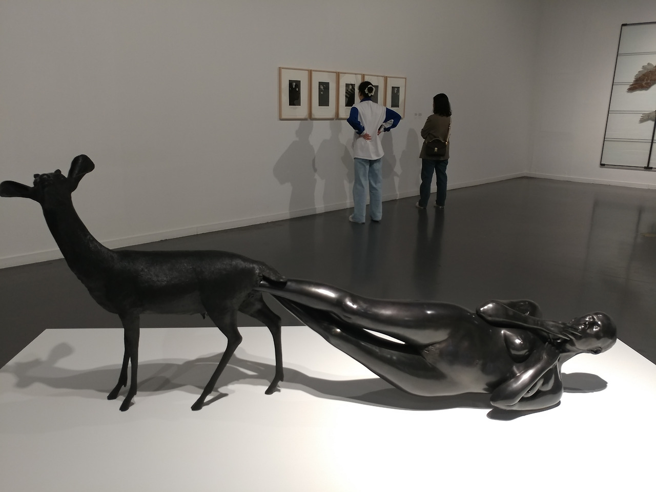 아마 이번 전시에서 가장 대표적인 작품으로는 '황홀'(2001)과 '탄생'(2002)이 될 것 같다. 앞의 작품은 늑대의 배를 가르고 밖으로 나오는 여성을 묘사했고, 후자는 암사슴에서 여인이 탄생하는 순간을 나타냈다. 이는 서구 미술사에서 수동적인 자세로 우아하게 등장하는 신화 속 여성들과는 다르게, 충격적인 구도와 당당한 자태를 보임으로써 차별화한 것. 그러고 보니 그랬다. 이들 동물로부터 나오는 모습이 우아하거나 아름다운 것과는 확실히 거리가 멀다. 앞에 언급한 전시장에 들어서면 가장 먼저 마주치는 메두사도 그렇고.