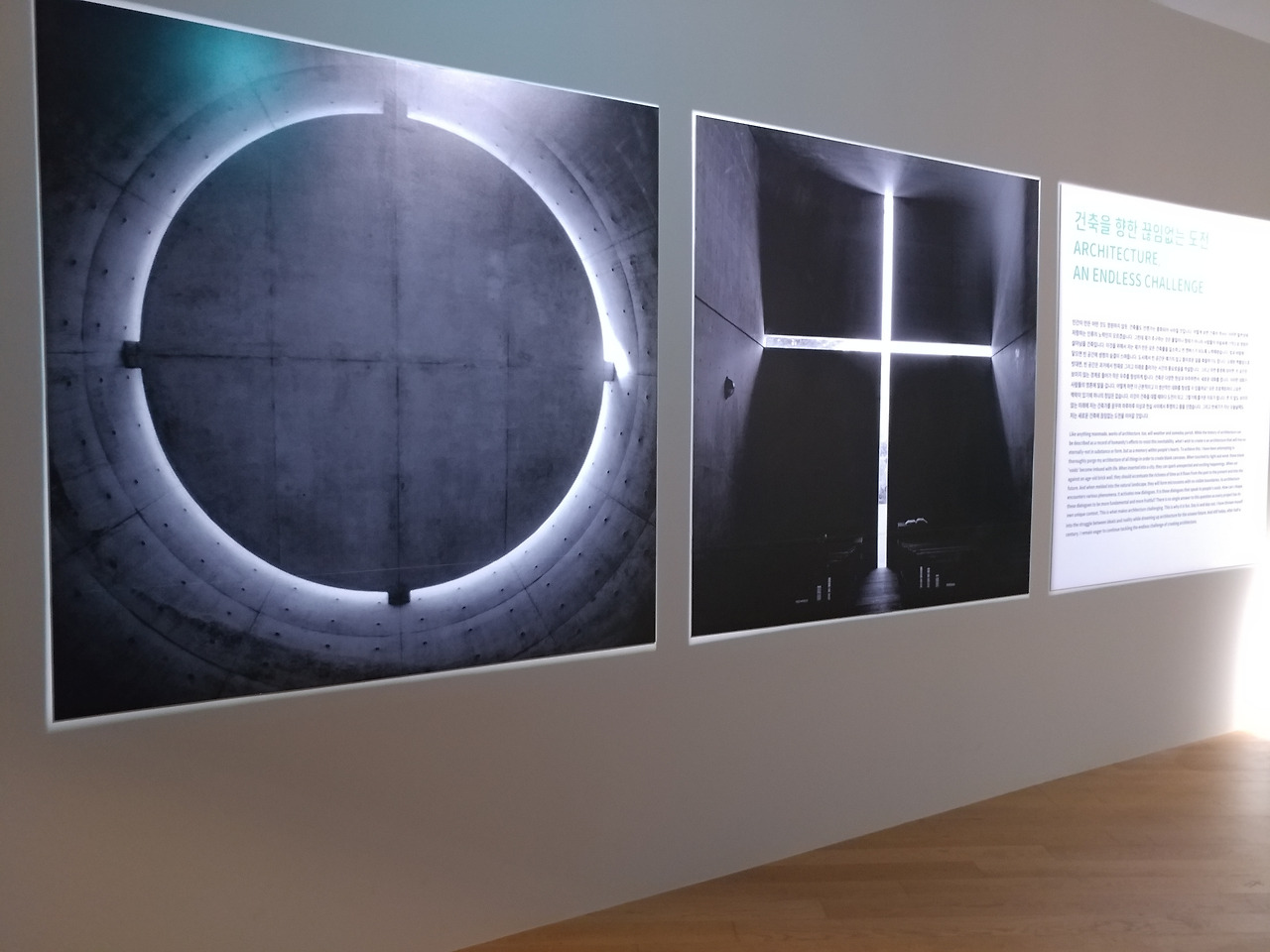 바로 옆 청조 갤러리에는 안도 타다오의 건축 작품 모형들과 작업과정을 알 수 있게 했다. 전 세계에 걸쳐 제작된 그의 작품들과 공모에 응시했지만 채택되지 않은 작품들까지. 어떻게 안도 타다오가 세계적인 건축가가 되었는지 알 수 있는 증거물. 천재가 하루아침에 이뤄지지 않음을 보여주는 상징과도 같은 공간.