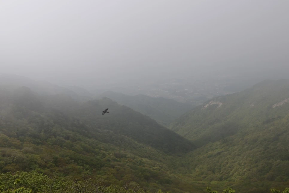 오늘 주인공은 아무래도 이 까마귀? 녹색 산맥을 자유롭게 날아가는 저 새. 자유란 이런 거야 하고 말하는 것 같다. 아, 그러고 보니 녹색이 자유다. 자유!