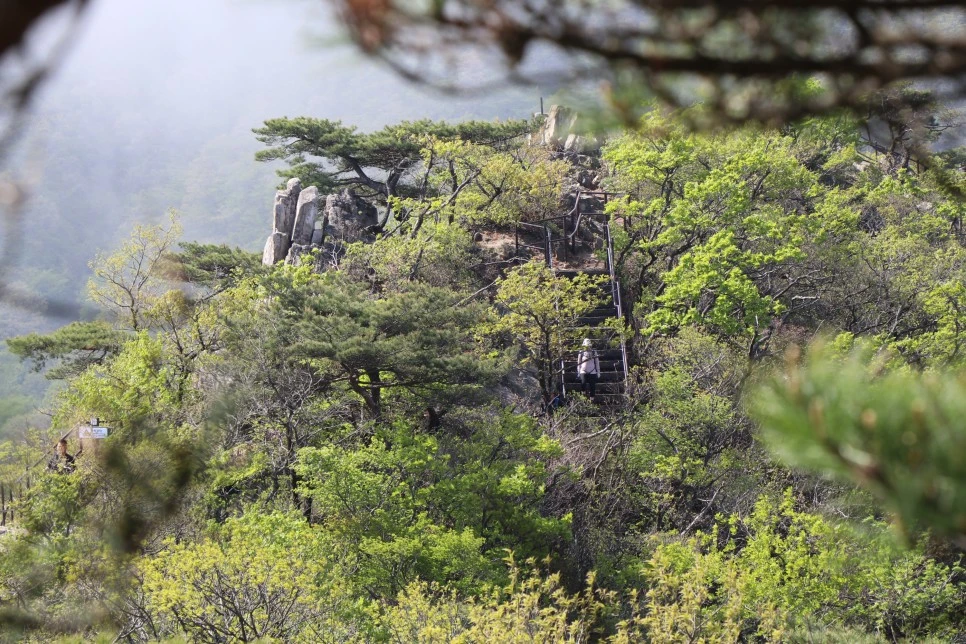 멀리 보이는 철계단들이 아득하지만, 한발 한발 내딛으면 정상에 도달한다.