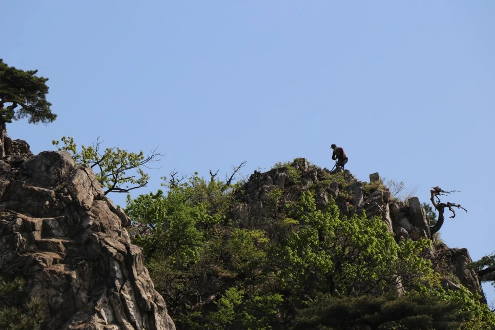 산봉우리에 어떤 이가 순간을 남기려 열심히 사진을 찍는다. 그가 찍은 사진은 어떻게 계룡산을 그릴까?