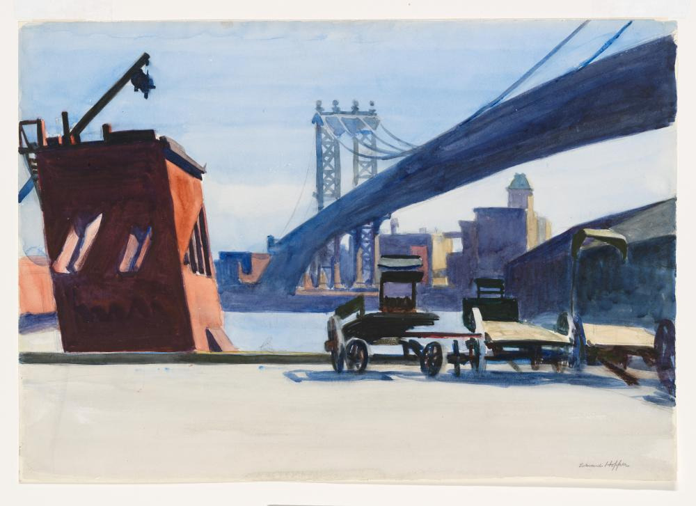 다리 모양이 익숙한데, 영화 때문이다. 원스 어폰 어 타임 인 아메리카. 1984년 개봉한 영화. 누구든 쉽게 떠올릴 장소. 마피아가 담배를 물고 총을 난사했을 것 같은 시대. 지금은 배낭여행객들이 들러 꼭 찍는다는 그 장소. 저 강이 이스트 강인데. 브루클린과 차이나타운을 연결하는 다리가 뭔가 허전하다. 이 그림을 그렸던 당시 고층건물들이 한창 들어서기 전이었다고. 뉴욕도 정말 많이 변해왔던 곳이란 게 실감이 안 난다.