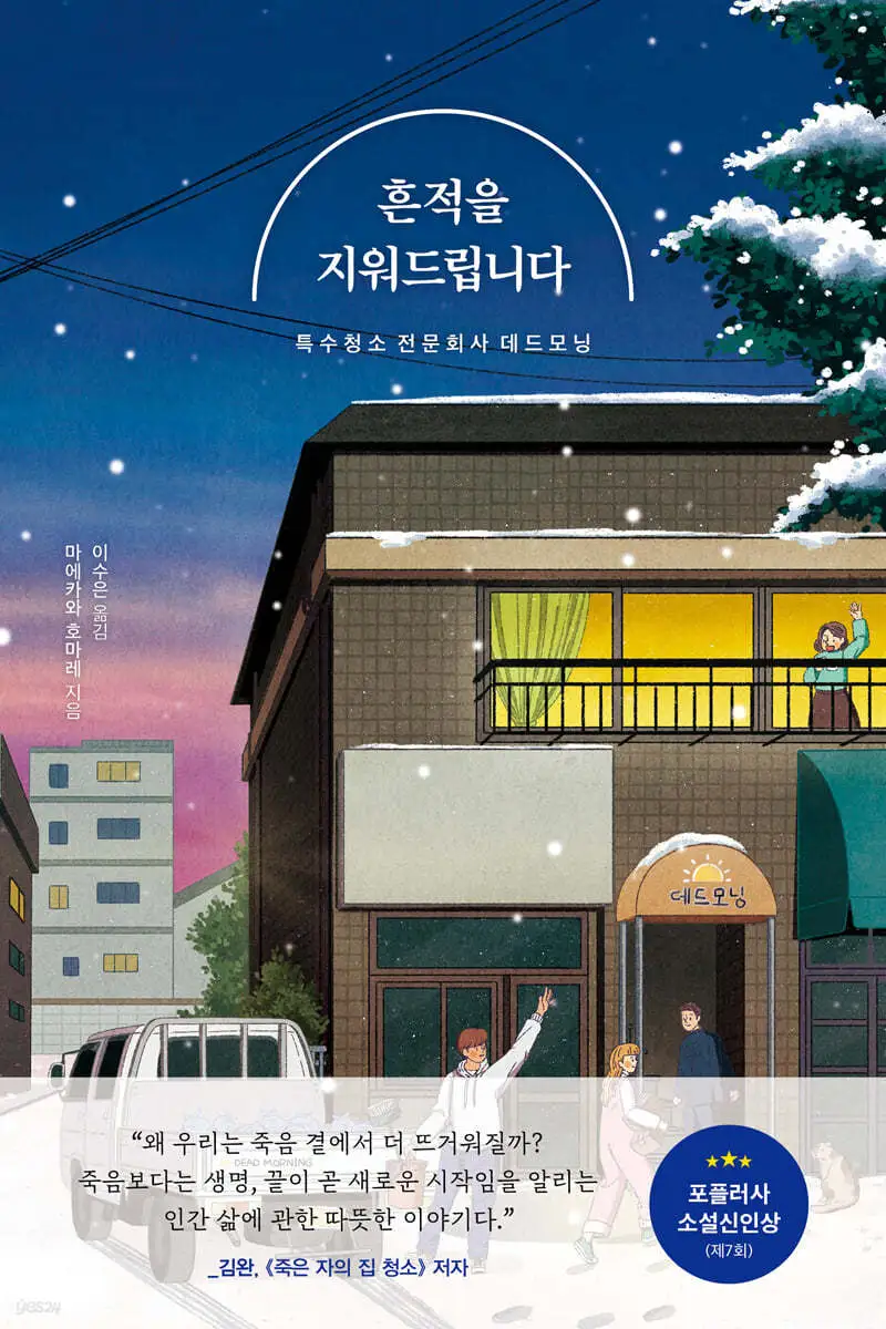 아사이 와타루. 해파리처럼 부유하는 젊은이. 할머니가 돌아가셨어도 죽음에 대해 깊은 고민이 없던 그가 우연히 들른 꽃병이란 술집에서 사사가와를 만난다. 그는 데드모닝이란 회사의 대표. 그 회사가 뭔고 하니 특수청소 전문회사이다. 특수청소? 특수청소 전문회사 데드 모닝. 이곳에서 아르바이트 생으로 나중에 정직원으로 변하는 와타루. 나중에 회사 이름이 '굿모닝'으로 바뀌어서 희망적으로 끝나는 게 이 소설의 백미지만, 마음 한구석 멍하게 만드는 이 느낌은 뭘까?