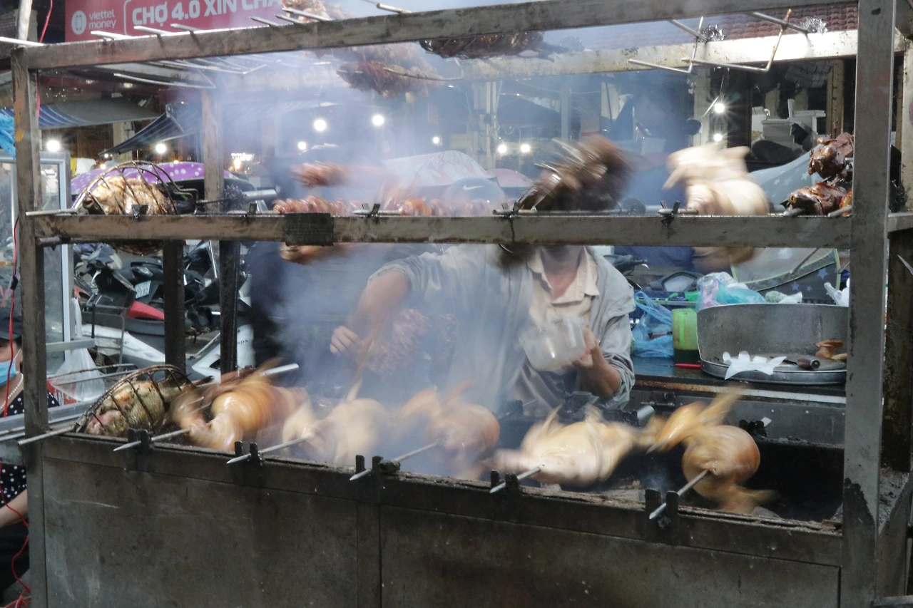 이건 시장 쪽으로 갈수록 외국인들이 드물어졌기 때문이다. 이걸 현지인 향기? 처음 G8 버스를 타고 도착한 곳도 이곳에 있다. 더 걸어가니 나온 사파 재래시장이다. 이곳에 대한 첫 느낌은? 그저 사람 사는 '모습'이 가공되지 않고 뚝뚝 떨어진다. 사람 수만큼 많은 오토바이. 냉동고 없이 그 자리에서 썩둑 잘라 파는 정육점, 살아 움직이는 민물게들. 뭉텅이로 잘린 잉어, 숯불에 굽는 회전고기구이 행상, 채소와 과일 가게와 옷가게. 여기에 철갑상어 두 마리. 여기저기 수많은 약재상까지. 사파 시장은 전체가 살아 움직이는 유기체 같았다.