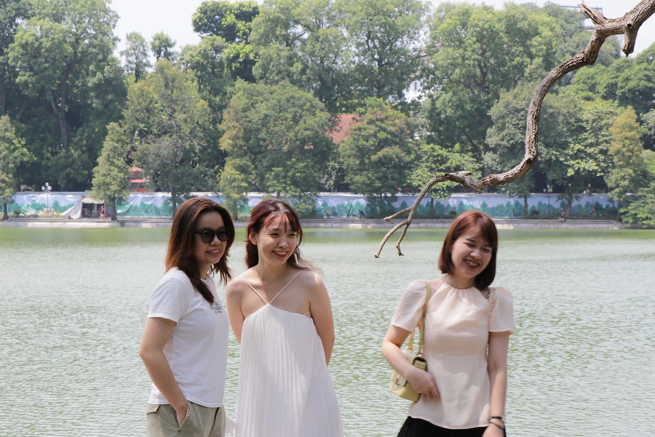 사당을 품고 있는 호안끼엠 호수 일상. 평화란 좋은 거다.