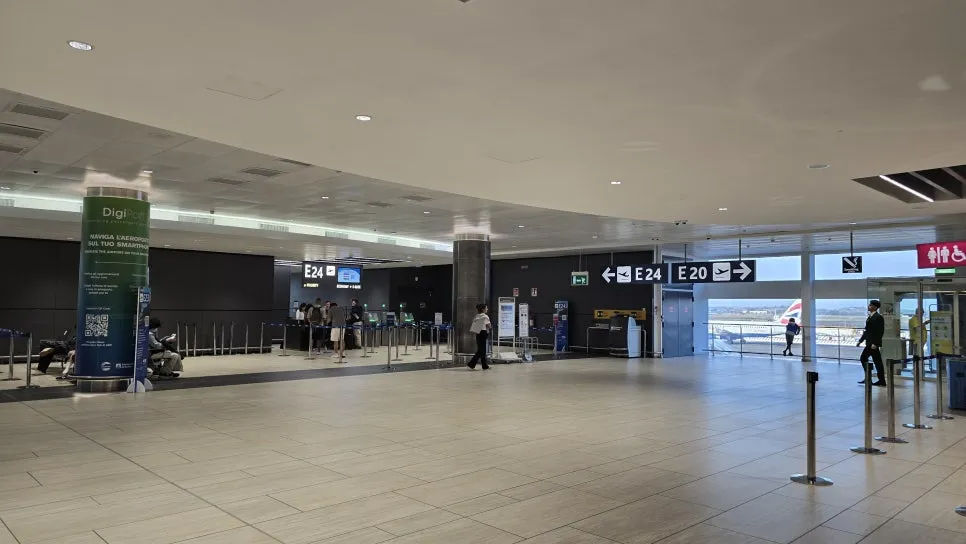 로마 테르미니 역에서 공항 피우미치노까지 40분 정도 걸렸다. 이래서 익스프레스였나? 내가 탄 기차 이름이 왜 레오나르도 익스프레스였을까? 오는 내내 궁금했던 건 돌아와서 알게 되었다. 역시나 우리처럼 공항에 오는 방법이 버스와 기차가 대중적인데, 익스프레스란 말은 빨리 간다는 의미였을 텐데, 10분 정도 빨리 가는 걸 익스프레스라고 이름을 붙이다니. 지금 생각해도 의아하다. 이건 중간에 쉬지 않고 간다라는 의미로 이해하는 게 좋을 것 같았다. 한 10분 정도 더 걸리고 중간에 4번 더 정차하는 트레노 레지오날레라는 완행열차도 있었기 때문이다. 그 가격은 8유로. 익스프레스 가격은 익스프레스라서 14유로인가? 돈 아낀다고 굳이 이걸 이용할 필요는 없을 것 같다. 이건 비행기를 타야 하기 때문이다. 확실한 건 기차를 탄 후 검표원이 와서 검표를 할 때까지 약간 긴장하다가, 검표원이 QR카드를 확인한 후 진짜 돌아간다는 생각이 들었다. 표가 잘못되면 어떡하지라고 생각과 그럴 리가라는 생각이 들기도 했다. 기차역을 떠나 공항까지 객실 모니터에 도착 시간표가 표시되었는데, 도착 시간은 정확했다. 이래서 익스프레스이었을까?