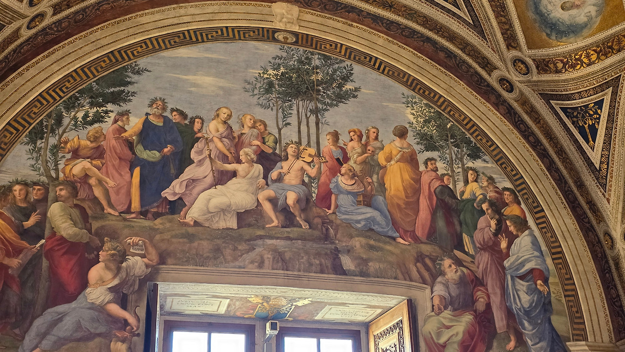 소비에스키의 방/성모 마리아의 방/라파엘로의 방 - 라파엘로가 4개 방의 벽화와 천장화를 그렸다. 대표작이 아래 아테네 학당이다.