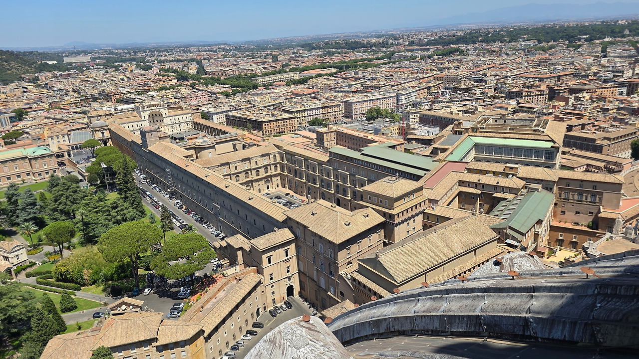 열쇠 모양 광장, 이걸 돌리면 천국으로 갈 것 같은 시야가 눈에 들어온다. 아마, 이탈리아 어느 성당 쿠폴라에 올라가더라도 볼 수 없는 모습이다. 성당 주변이 어디든 대부분 도시일 테니, 올라가서 도시 주변 둘러보는 거야 당연하지만. 성 베드로 성당에서 보이는 로마 시내는 그 어떤 쿠폴라에서 내려다보는 광경보다 감흥만큼은 최고일 듯하다. 이를 베르니니가 설계했다고 하니. 다시 한번, 성당을 건축했던 그들의 신에 대한 경외와 신을 향한 예술가적 열망이 그저 존경스럽다. 이건 베드로 성당 건축물이 왜 위대한 걸작이 되었는지 굳이 말하지 않아도 될 텐데, 역시나 말이 많았다. 유구무언이라며!