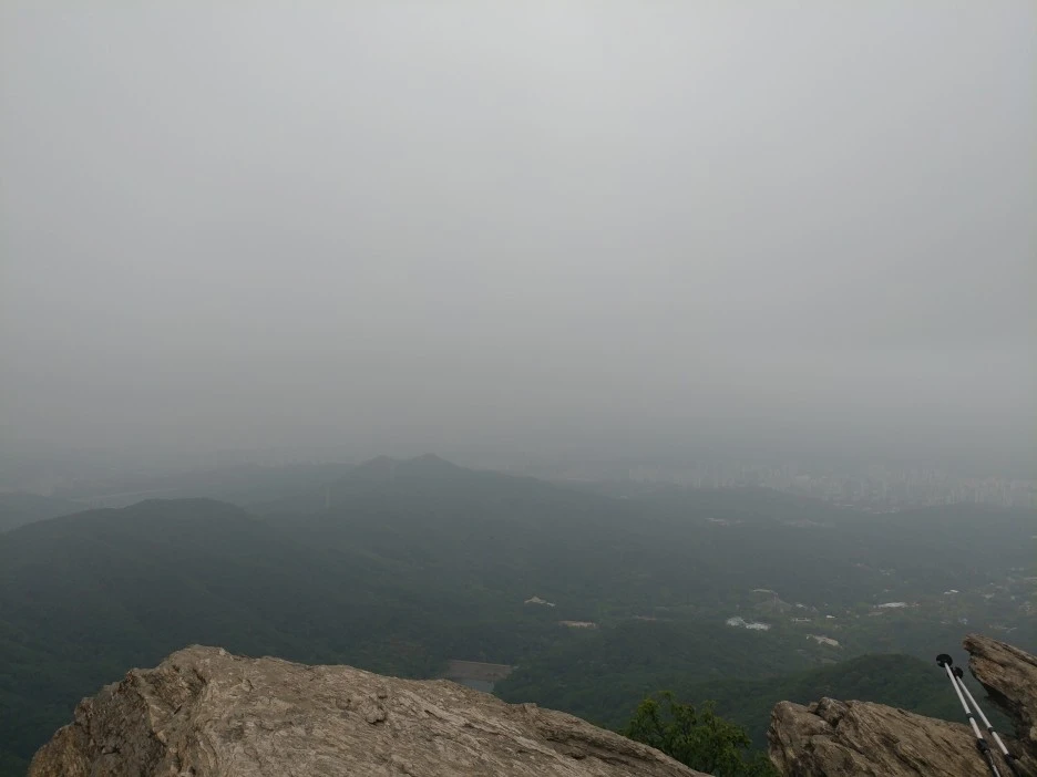 결론은, 오른쪽으로 올라 청계산 능선 타고 청계산에서 가장 높은 망경대에 가는 것이다. 난점은 망경대에 군부대가 있어서 망경대가 목표는 아니고 그 옆 석기봉이 목표다. 그게 그건데 그래도 아쉽지만 어쩌랴. 올라가 보면 그곳에 왜 군부대가 있는지 알게 될 것이고, 매봉이 되었건 석기봉이 되었건 관악산 방면으로 펼쳐지는 풍광을 즐길 수 있다. 매봉에선 서초구 쪽 경치가 보이지만, 석기봉에선 성남시 방면으로 시야가 펼쳐져 어디건 좋다. 오늘은 석기봉이 반환점. 언제든지 이곳에서 보는 과천 시내 정경은 그지없이 좋다. 딱 한 가지만 빼고. 날씨가 꽝이다. 비가 안 와서 천만까지는 아니고 백만 다행이기는 한데, 날씨가 흐려 정말 미스티 하다. 이 말도 틀린 것 같다. 그저 흐렸다. 미스티 근처도 가지 못하고.