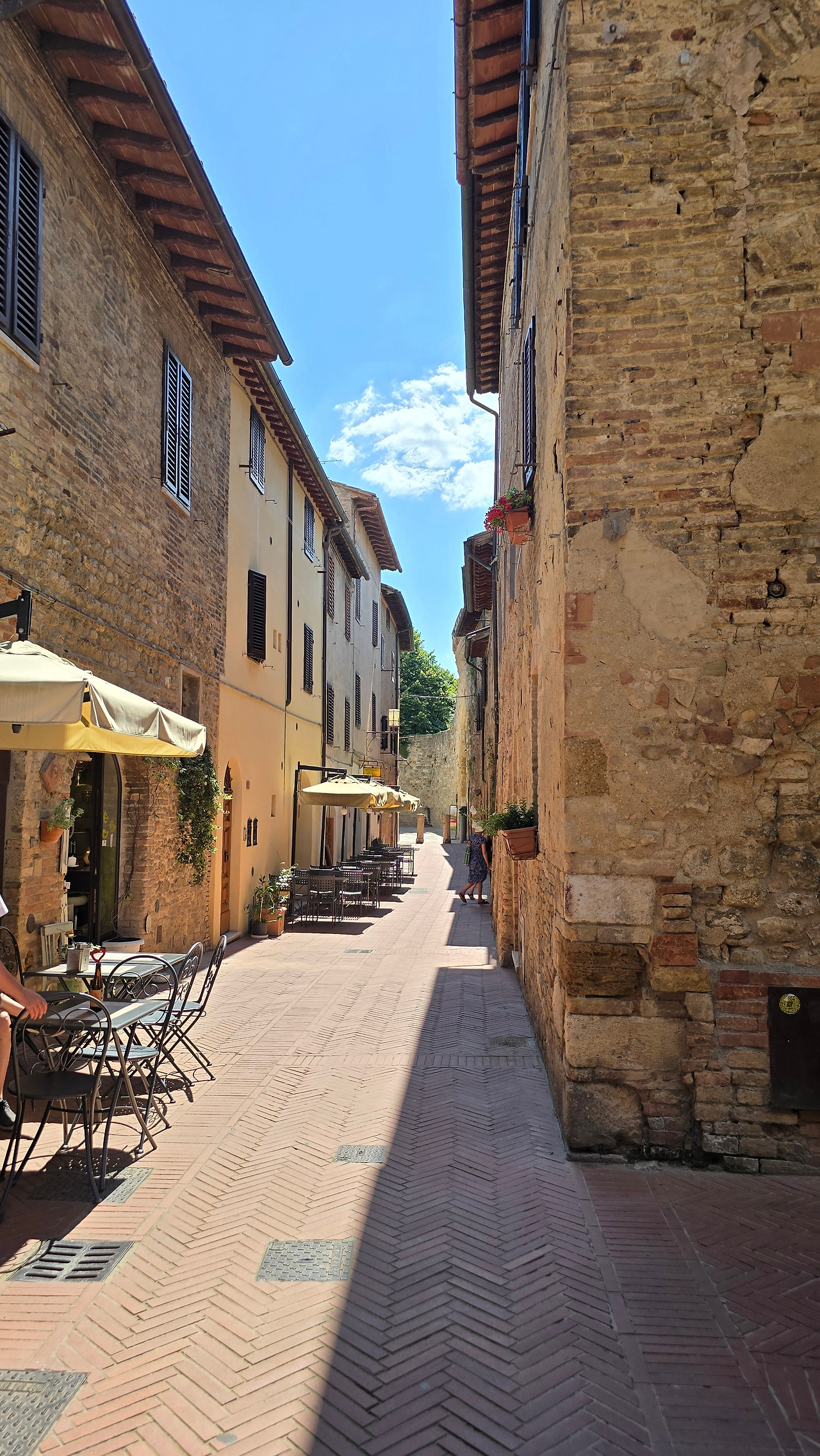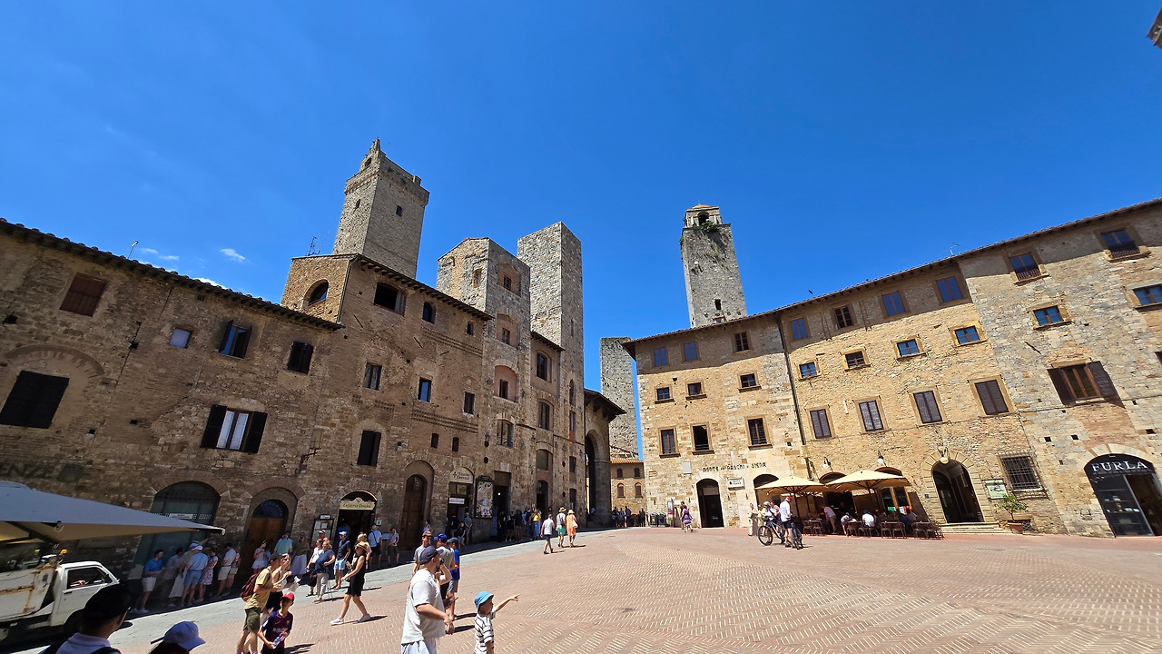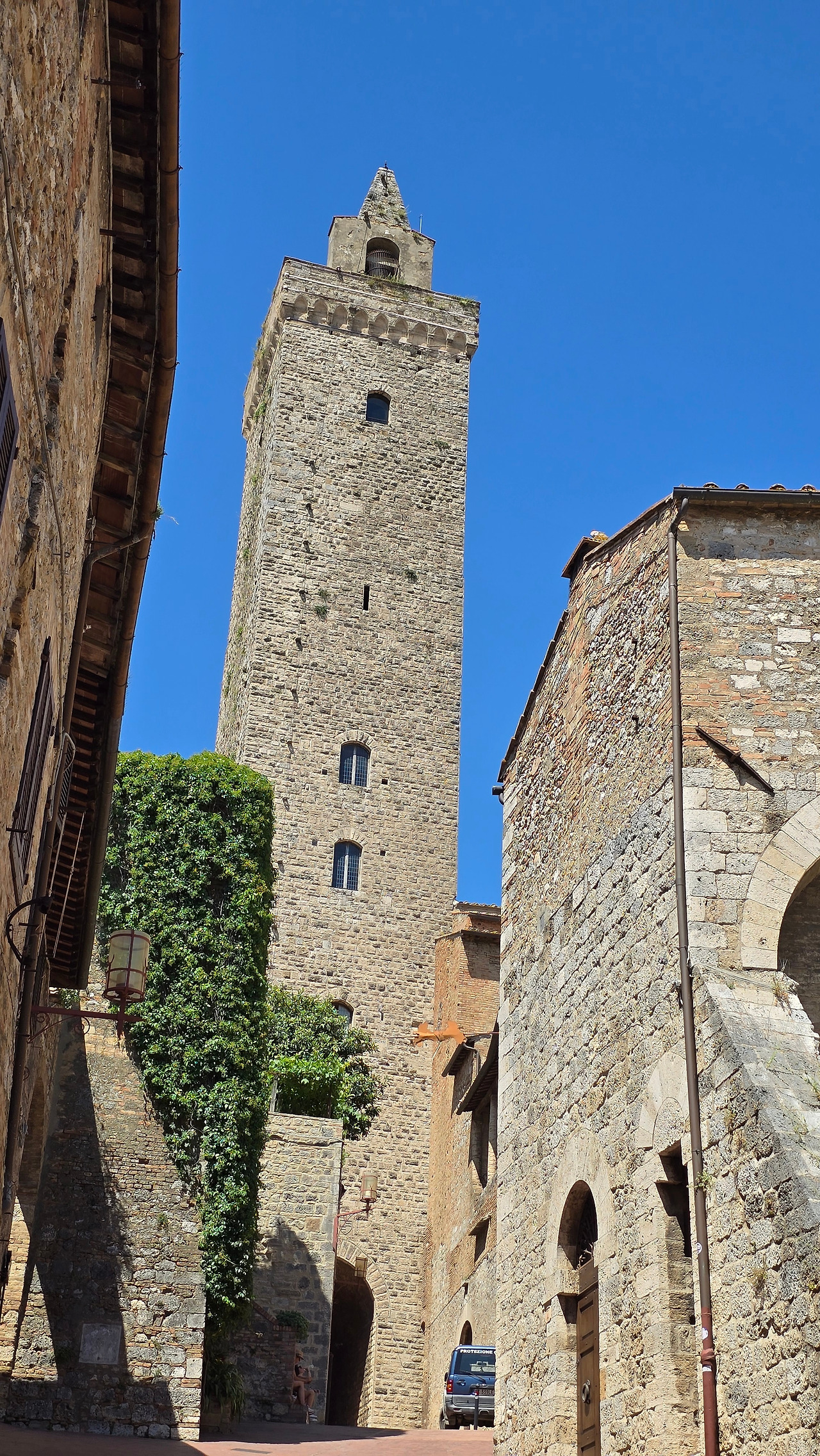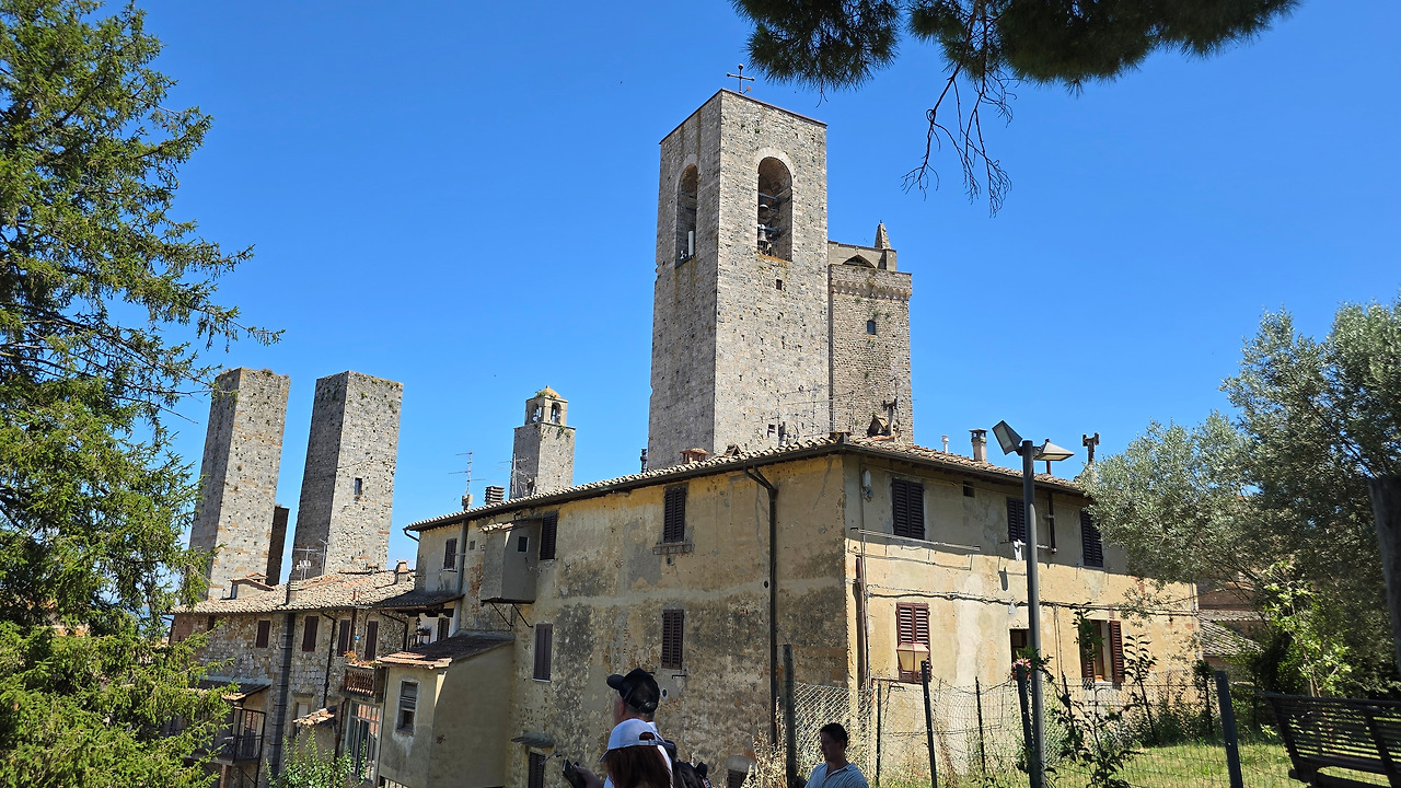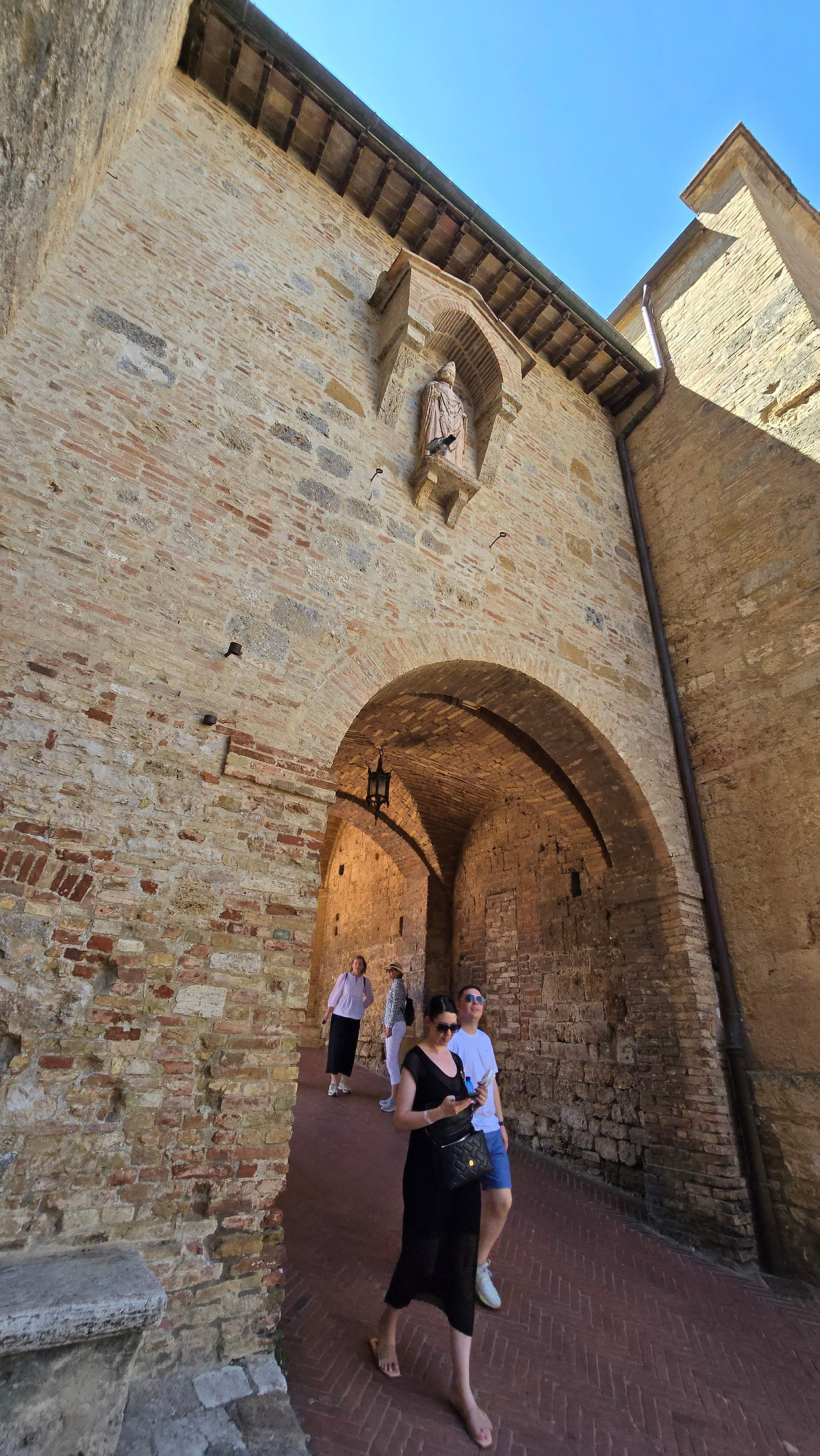 산지미냐노는 발음이 어렵다. 산이 들어갔으니 성인의 도시이다. 성 제미니아노가 훈족의 아틸라로부터 이 도시를 구한 후 서기 450년에 산지미냐노로 바꿨는데, 훌륭한 탑들의 도시라고 불리는 이유는 12개의 성곽들이 잘 보존되어 중세건축으로 유명해졌다고 한다. 그로 인해 유네스코 세계유산으로 정해진 곳. 귀족들간의 경쟁으로 좀 더 높은 성곽을 짓게 된 것 시작이라고 하나, 보다 더 중요한 것은 이곳 거리 골목을 거닐면 진짜 중세로 시간 이동을 한 것 같다는 것이다. 하나 더 이 도시는 비아 프란체지나 라는 성지순례길을 걸으면 거쳐야 하는 순례의 도시이기도 하다.