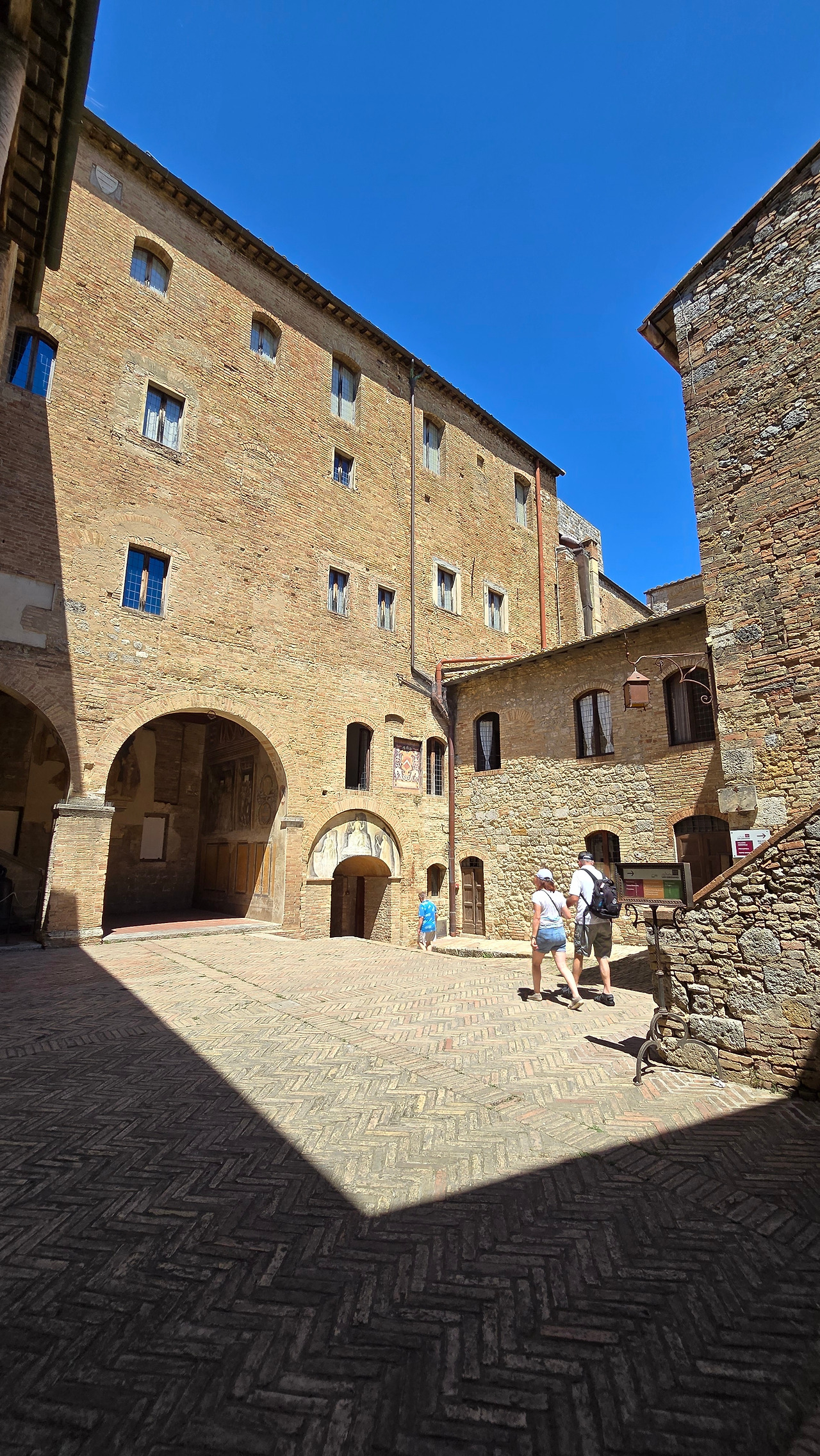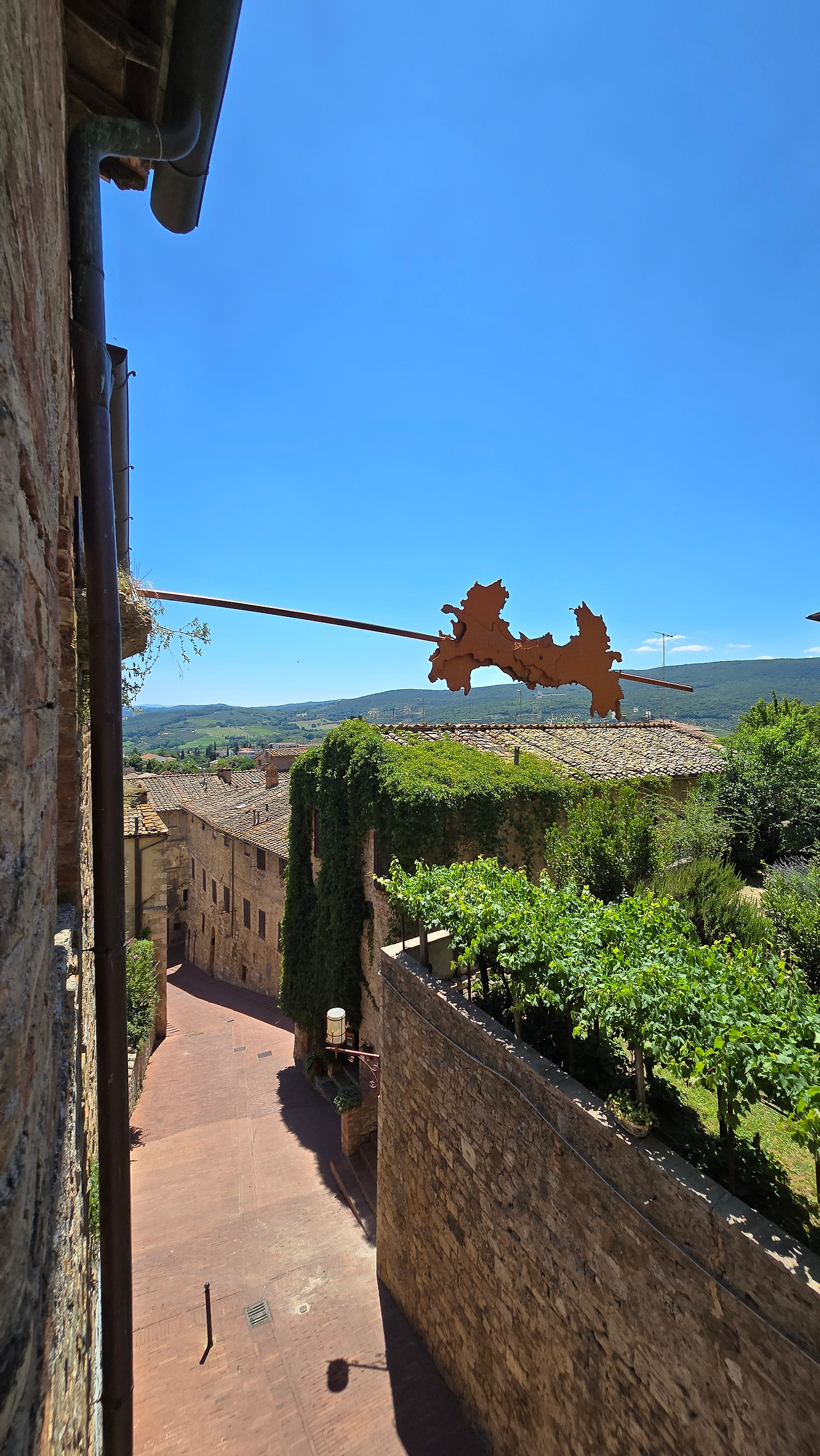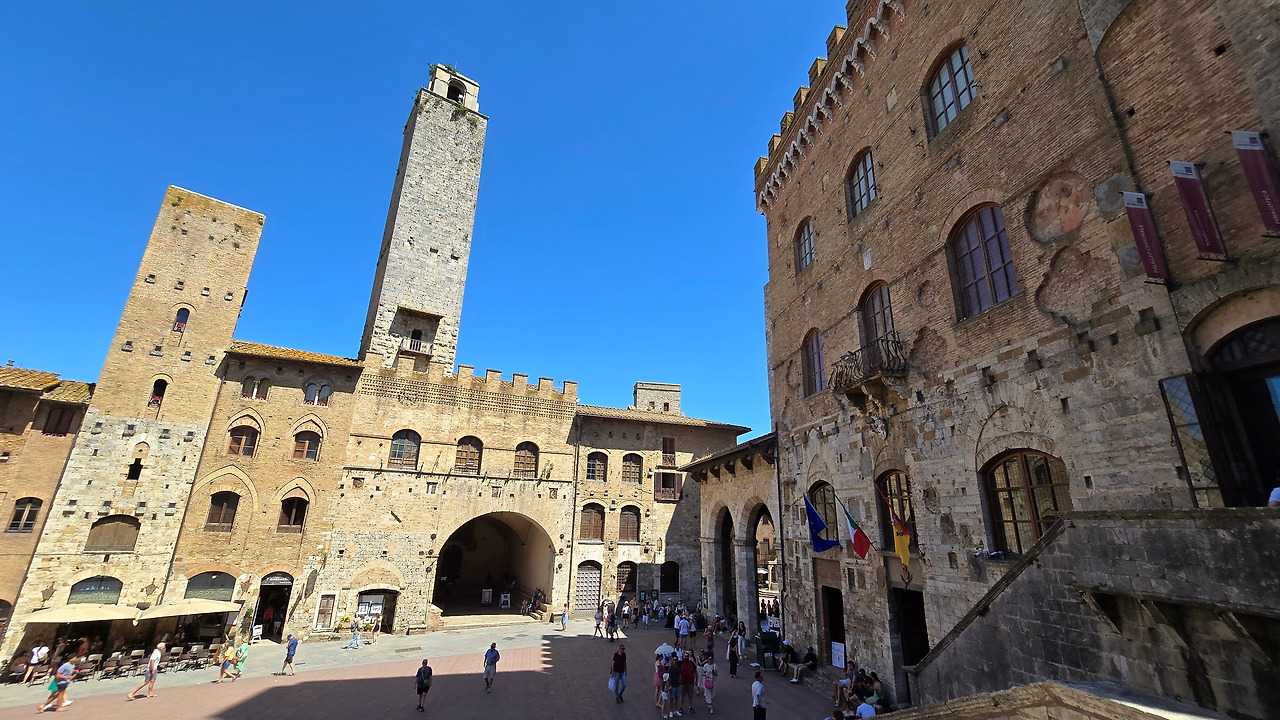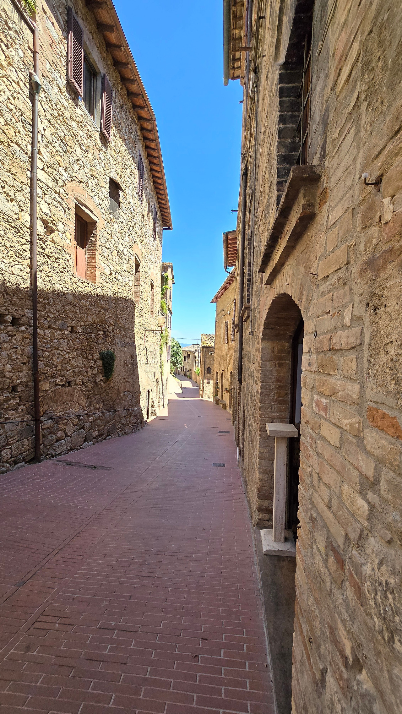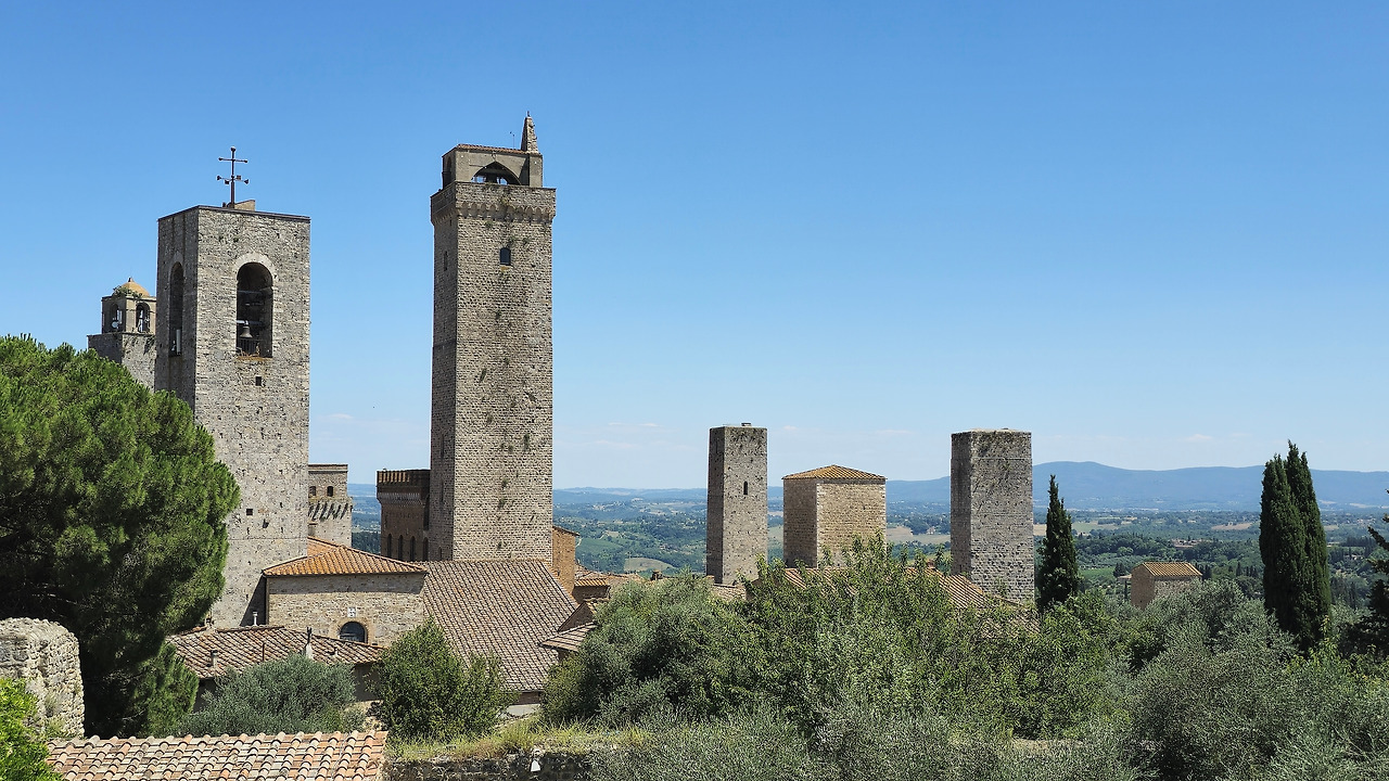 산지미냐노는 발음이 어렵다. 산이 들어갔으니 성인의 도시이다. 성 제미니아노가 훈족의 아틸라로부터 이 도시를 구한 후 서기 450년에 산지미냐노로 바꿨는데, 훌륭한 탑들의 도시라고 불리는 이유는 12개의 성곽들이 잘 보존되어 중세건축으로 유명해졌다고 한다. 그로 인해 유네스코 세계유산으로 정해진 곳. 귀족들간의 경쟁으로 좀 더 높은 성곽을 짓게 된 것 시작이라고 하나, 보다 더 중요한 것은 이곳 거리 골목을 거닐면 진짜 중세로 시간 이동을 한 것 같다는 것이다. 하나 더 이 도시는 비아 프란체지나 라는 성지순례길을 걸으면 거쳐야 하는 순례의 도시이기도 하다.