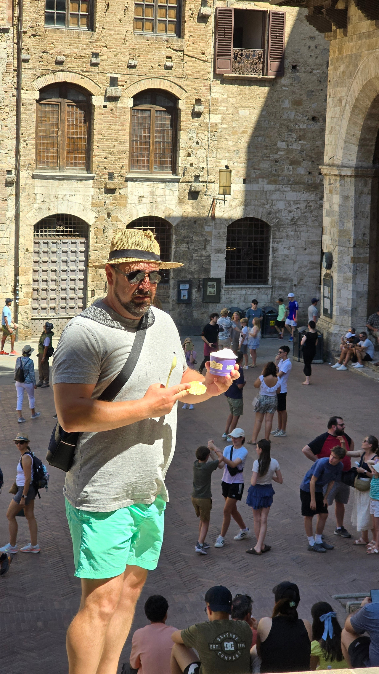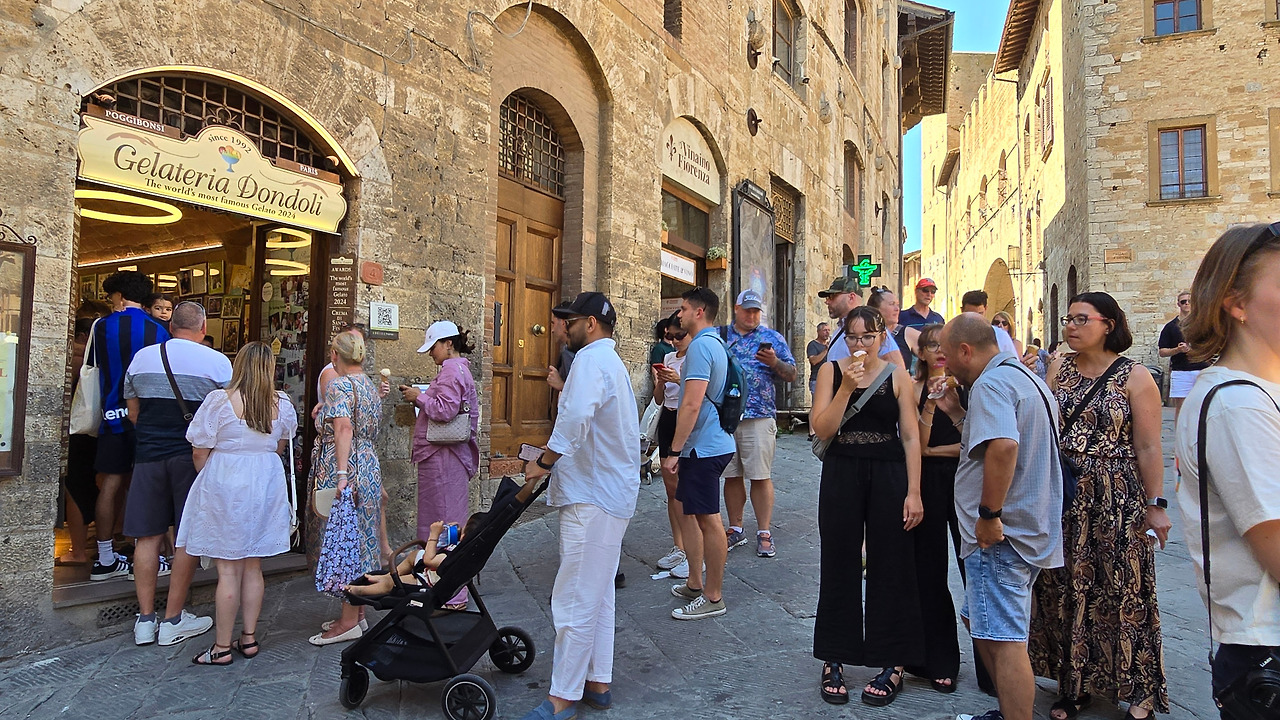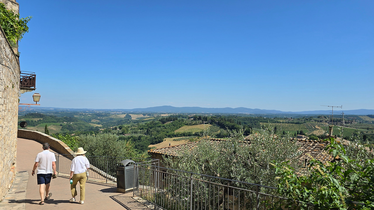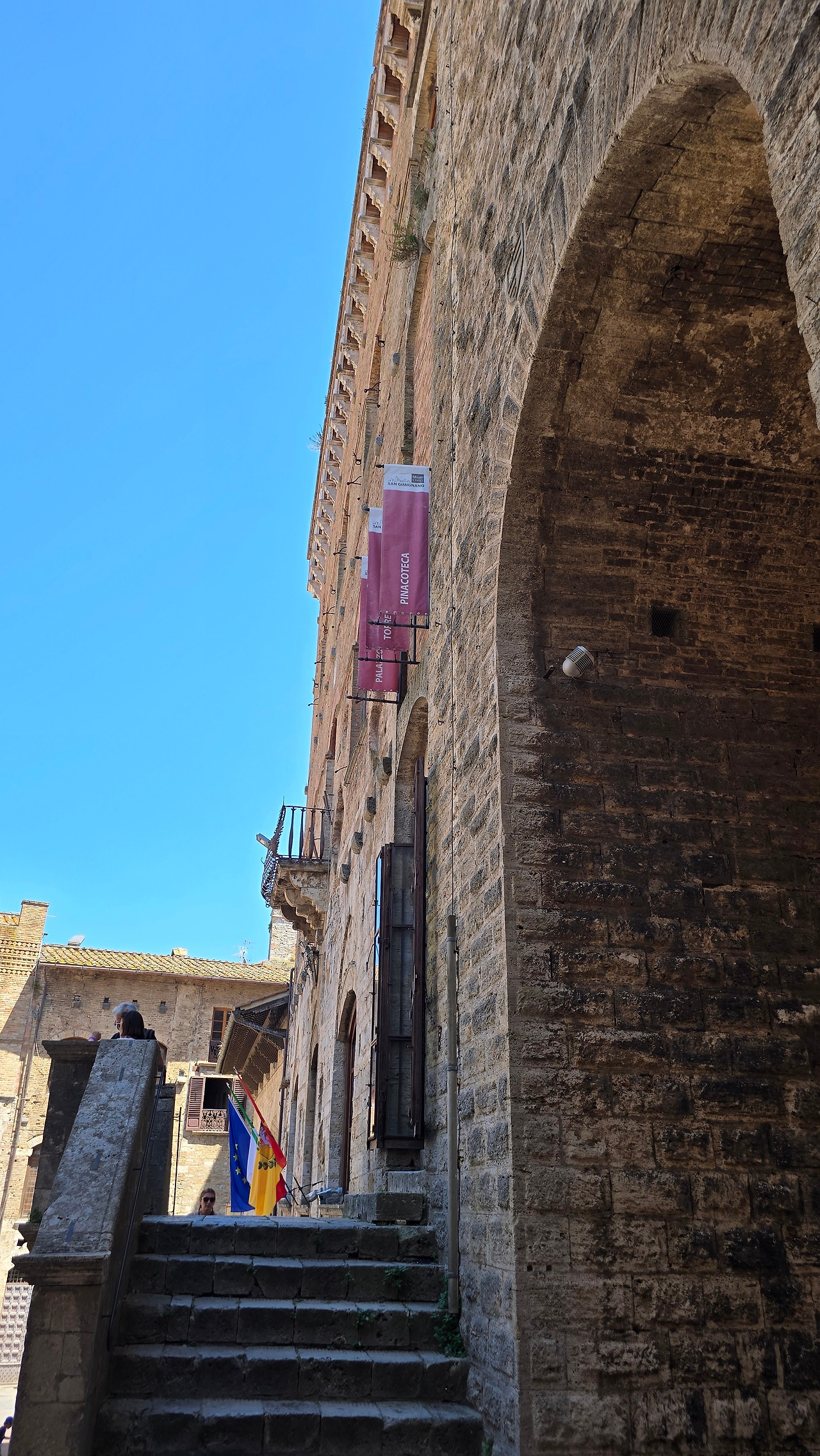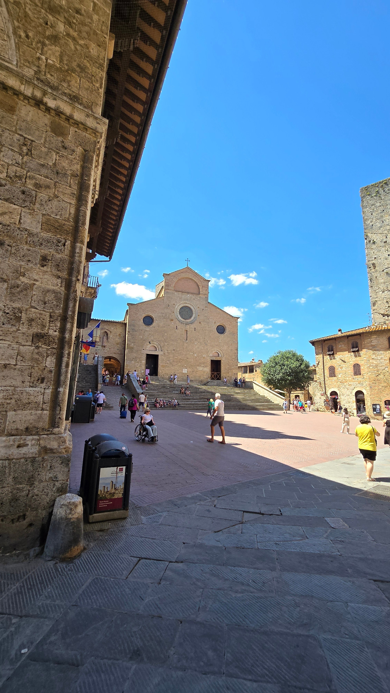산지미냐노는 발음이 어렵다. 산이 들어갔으니 성인의 도시이다. 성 제미니아노가 훈족의 아틸라로부터 이 도시를 구한 후 서기 450년에 산지미냐노로 바꿨는데, 훌륭한 탑들의 도시라고 불리는 이유는 12개의 성곽들이 잘 보존되어 중세건축으로 유명해졌다고 한다. 그로 인해 유네스코 세계유산으로 정해진 곳. 귀족들간의 경쟁으로 좀 더 높은 성곽을 짓게 된 것 시작이라고 하나, 보다 더 중요한 것은 이곳 거리 골목을 거닐면 진짜 중세로 시간 이동을 한 것 같다는 것이다. 하나 더 이 도시는 비아 프란체지나 라는 성지순례길을 걸으면 거쳐야 하는 순례의 도시이기도 하다.