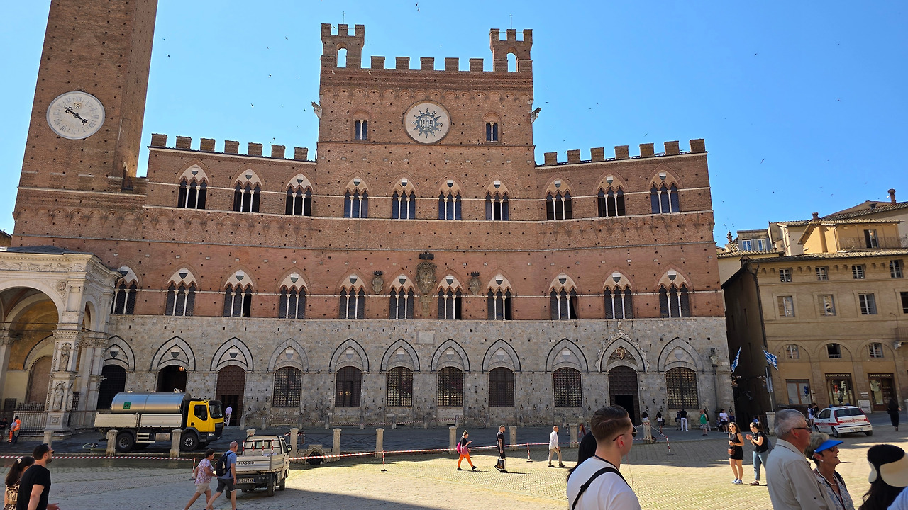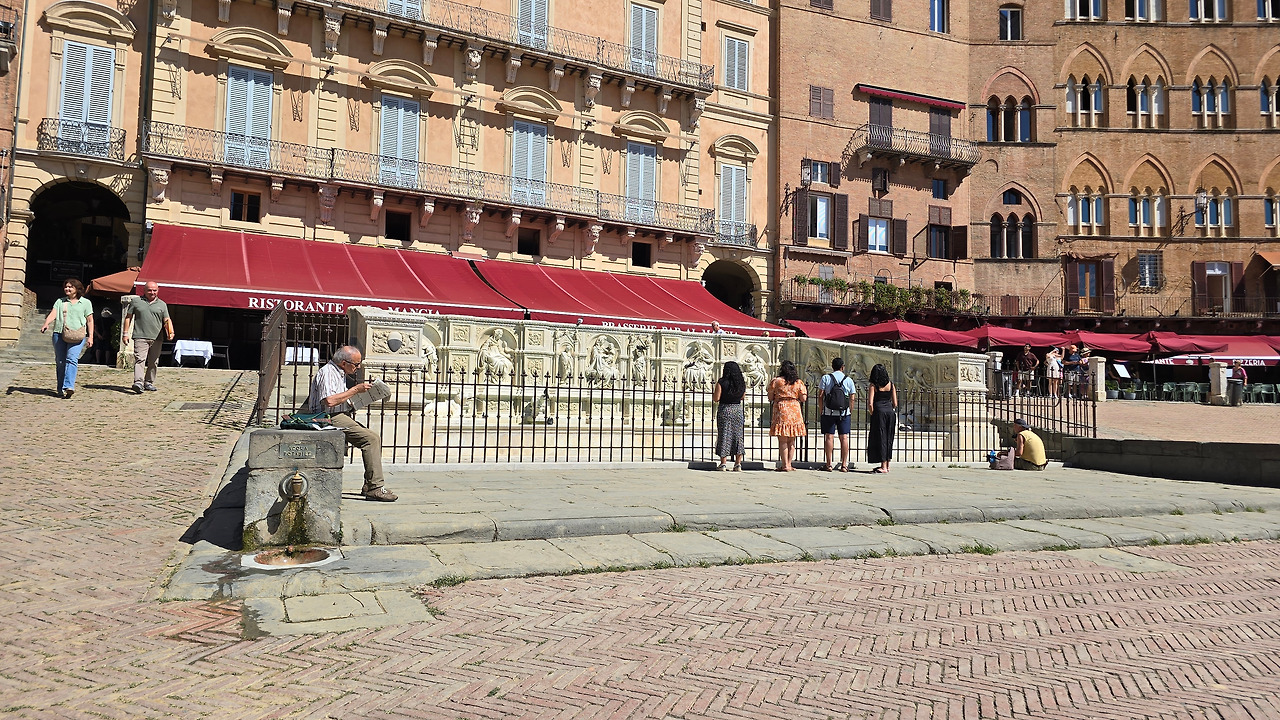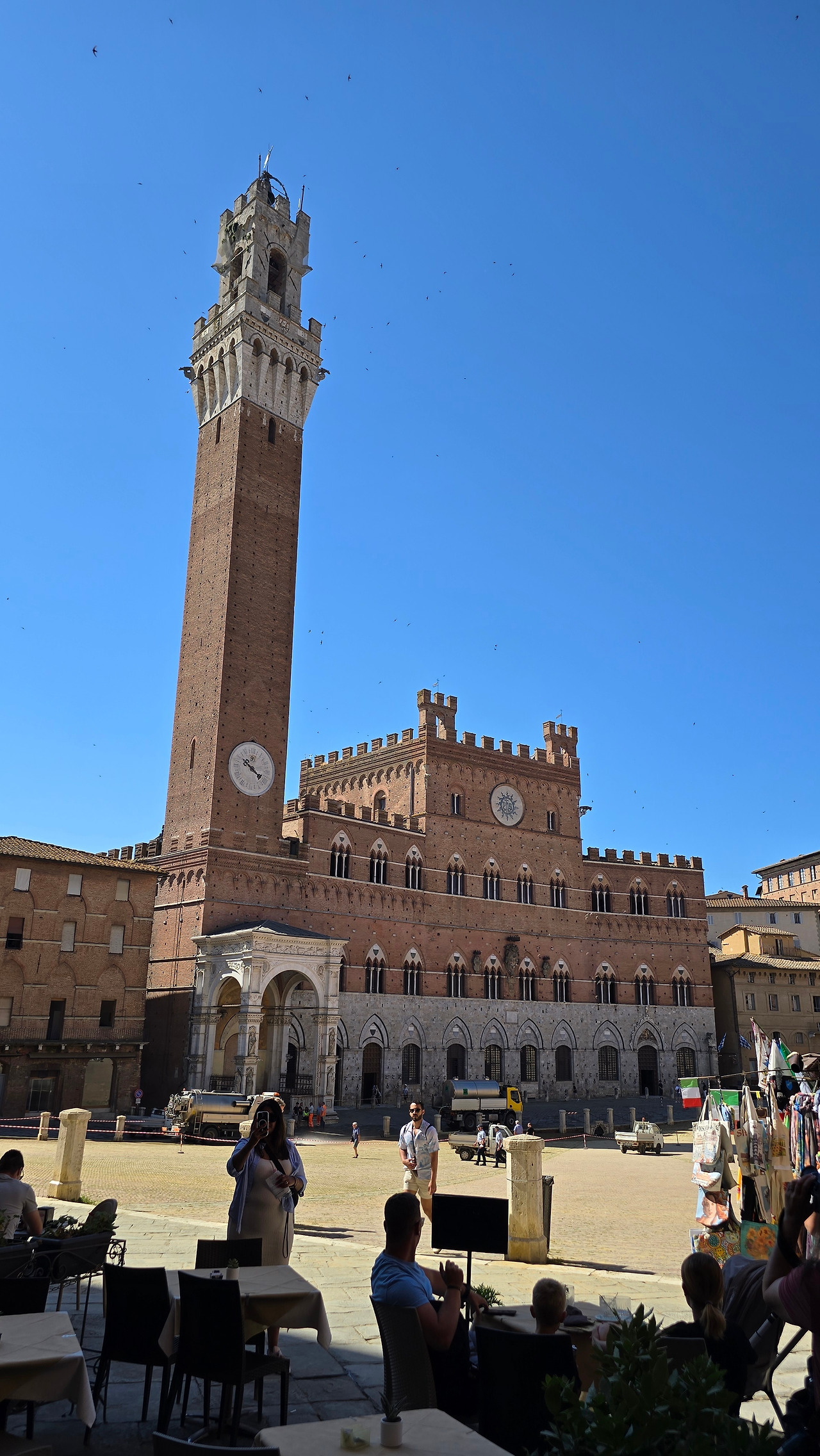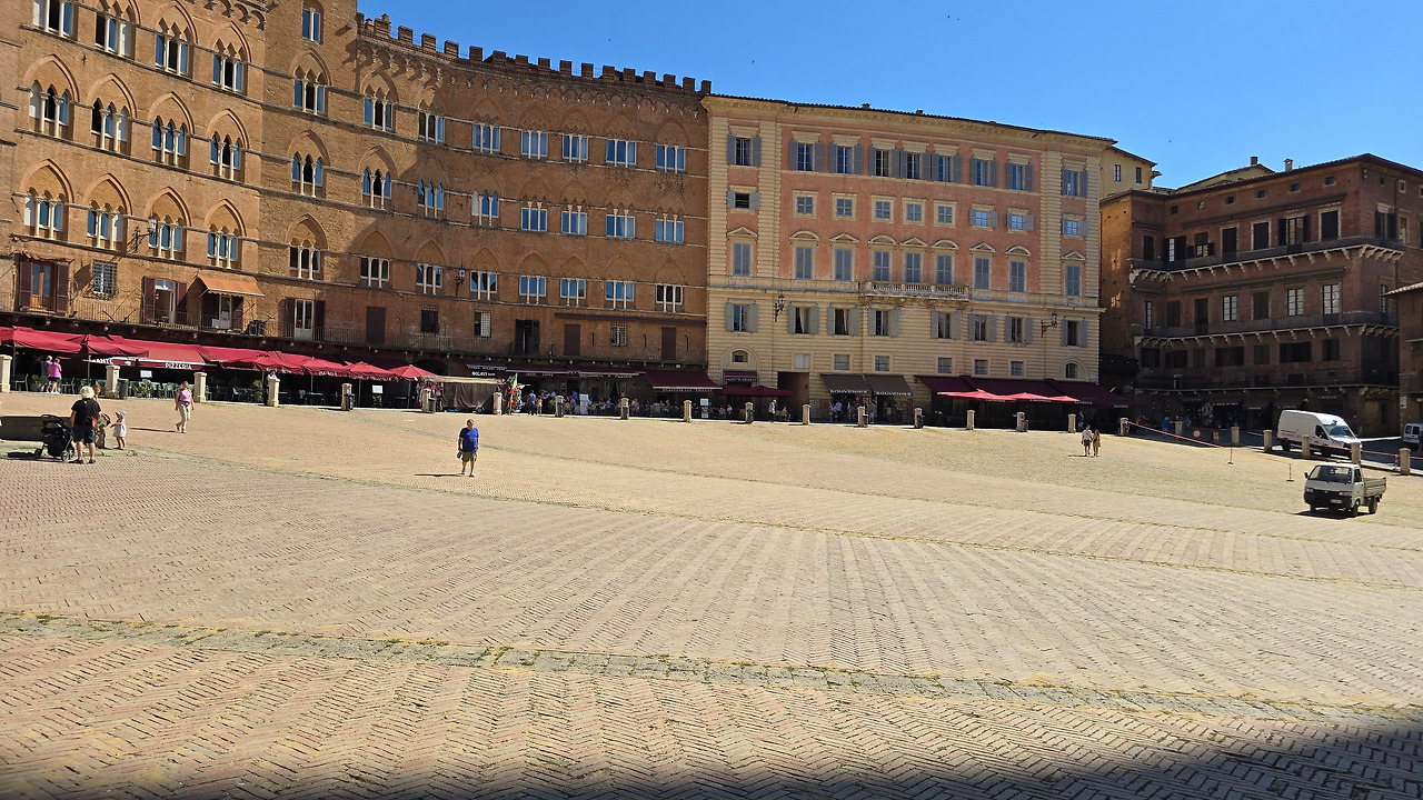캄포 광장은 조개 모양 혹은 부챗살 모양으로 9개의 공간으로 나뉘었는데, 가장 아름다운 광장으로 칭송받는 게 하나도 이상하지 않을 정도로 주변 건물들과 조화롭다. 이곳에서 일 년에 두 번 경마경기인 팔리오가 열린다는데, 지금은 시청사로 쓰이는 푸블리코 궁전에 깃발이 날리고 사람들이 응원을 하기 위해 몰려든다는 생각만으로도 캄포 광장이 얼마나 시에나를 대표하는 상징적인 공간인지 상상이 된다. 완만한 경사로 배수까지 고려하고, 그곳 중앙에 가이아의 분수까지 배치를 하다니. 다른 무엇보다도 기울어진 광장이라? 이곳에 누워 언젠가 해맞이할 날도 다시 오겠지만. 여름엔 말고. 궁전을 지울 때 깔 맞춤 한 것 같은 만자탑은 캄포 광장의 또 다른 별미(?)이기도 하다.