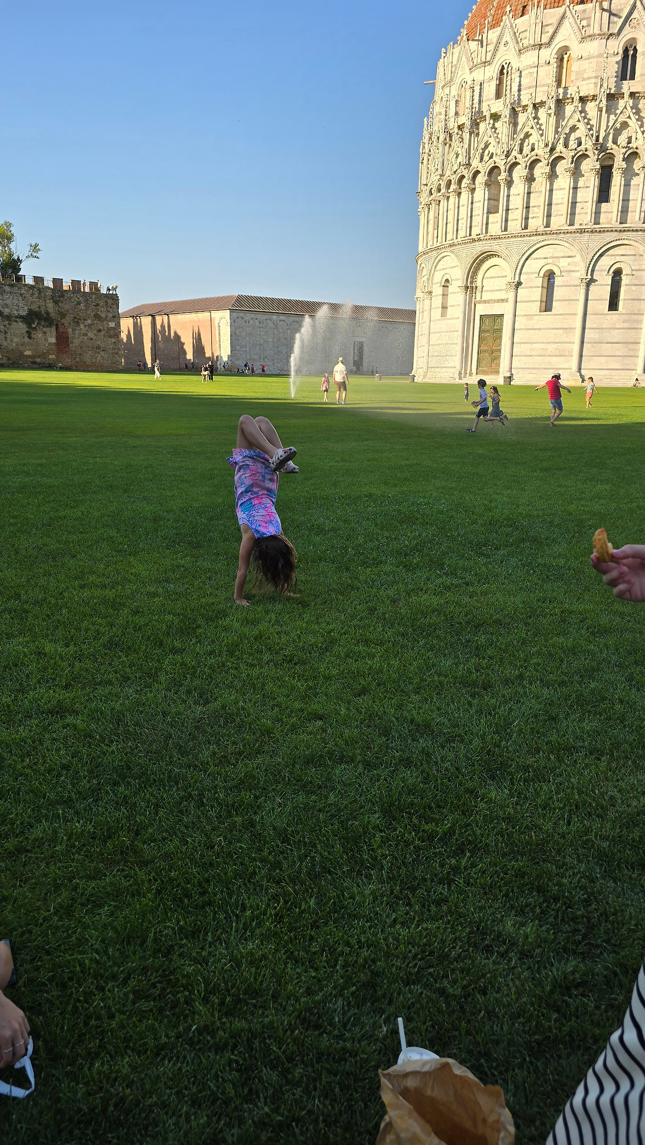 50명 정도가 버스에 탄 것 같은데, 가이드의 이탈리안 영어를 다 알아듣는 것 보니 영어에 능숙한 사람들 같았다. 인도계로 보이는, 싱가포르 사람들로 보이는, 무심히 지나쳤던 몇몇 사람들 빼고 거의 다 백인인 것 같았다. 부부 혹은 가족 단위로 온 듯한. 오늘 일정은 시에나, 산지미냐뇨, 피사를 돌아보는 것인데, 돌아오는 버스 안에서 가이드 카를로스가 오늘 와본 곳 중 가장 마음에 드는 곳이 어디냐고 물어봤을 때 피사가 꼴찌가 아니었다. 가이드는 약간 농조로 물어본 것인데, 답은 예상과 달랐다. 이건 가이드의 질문을 역시나 농으로 받은 것 같았다. 피사는 말이다. 그냥 피사였다. 구색을 맞추기 위해 넣은 것만은 아닐 테지만. 피사에서 주어지는 자유시간 내내 피사 광장 안 잔디밭에서 애들 물놀이하는 것을 보는 것으로 소일했었다.