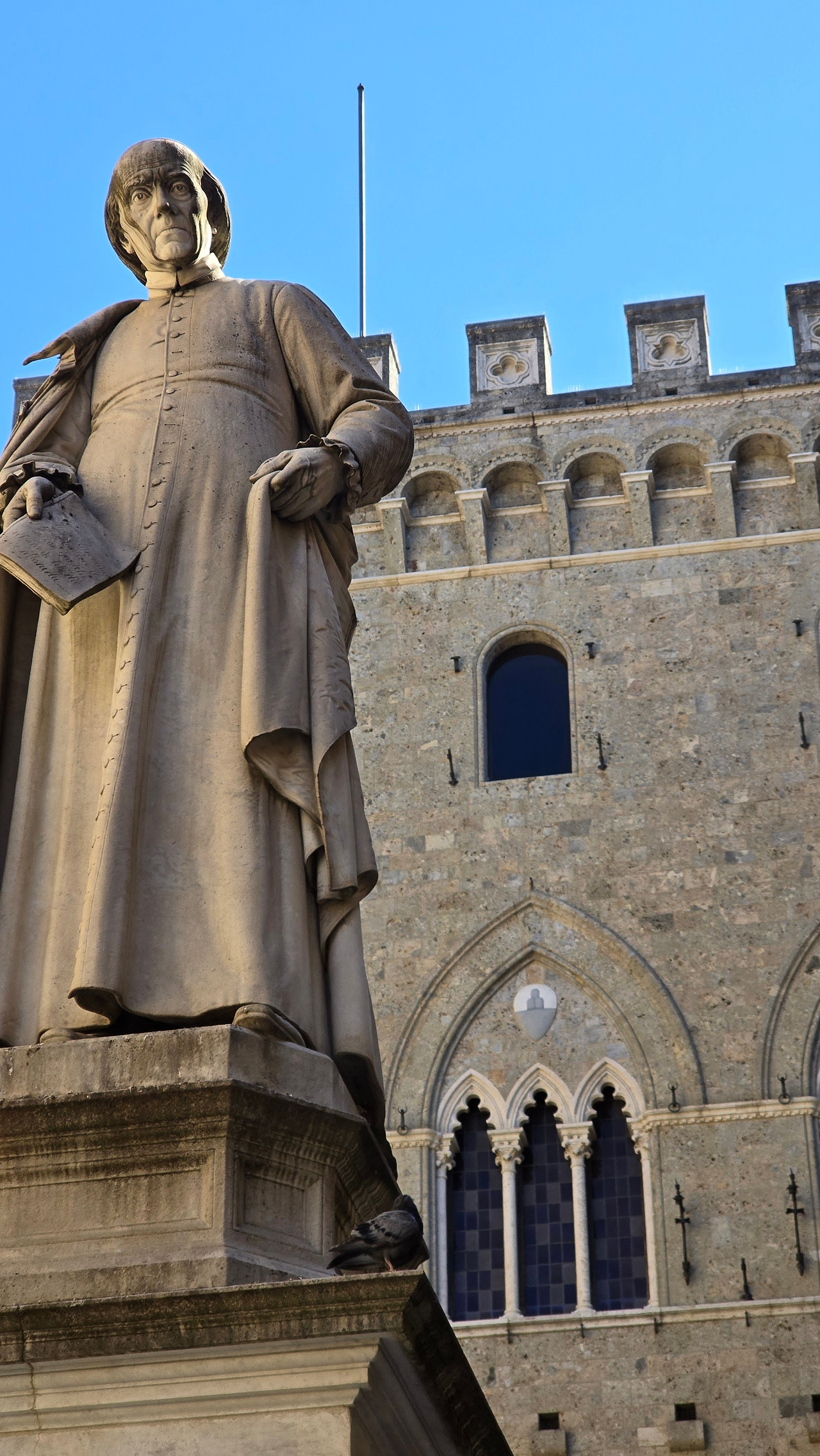 시에나는 토스카나 지방의 핵심이었다. 볼 것이 그만큼 많았다는 얘기인데, 그중에 백미는 시에나 두오모와 캄포 광장이었다. 독실한 신자라면 성녀 카테리나 생가를 방문할 테고, 로마를 거쳐 이곳에 온 이들이라면 산타 마리아 소프라 미네르바 성당에서 그녀의 석관을 이미 보고 왔을 터지만. 시에나가 세계 최초의 은행(1472)이 있을 정도로 상업과 교통의 중심지였다고. 십자군과 상인들과 순례자들로 넘쳐나던 이 도시가 피렌체와의 경쟁에서 밀리는 와중에 흑사병까지 돌게 되었다니. 그것이 지금까지 아름다운 도시로 남게 된 배경이라니.