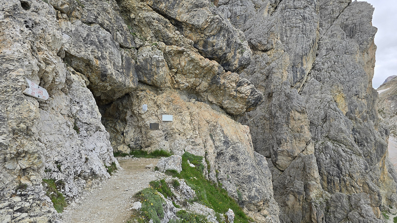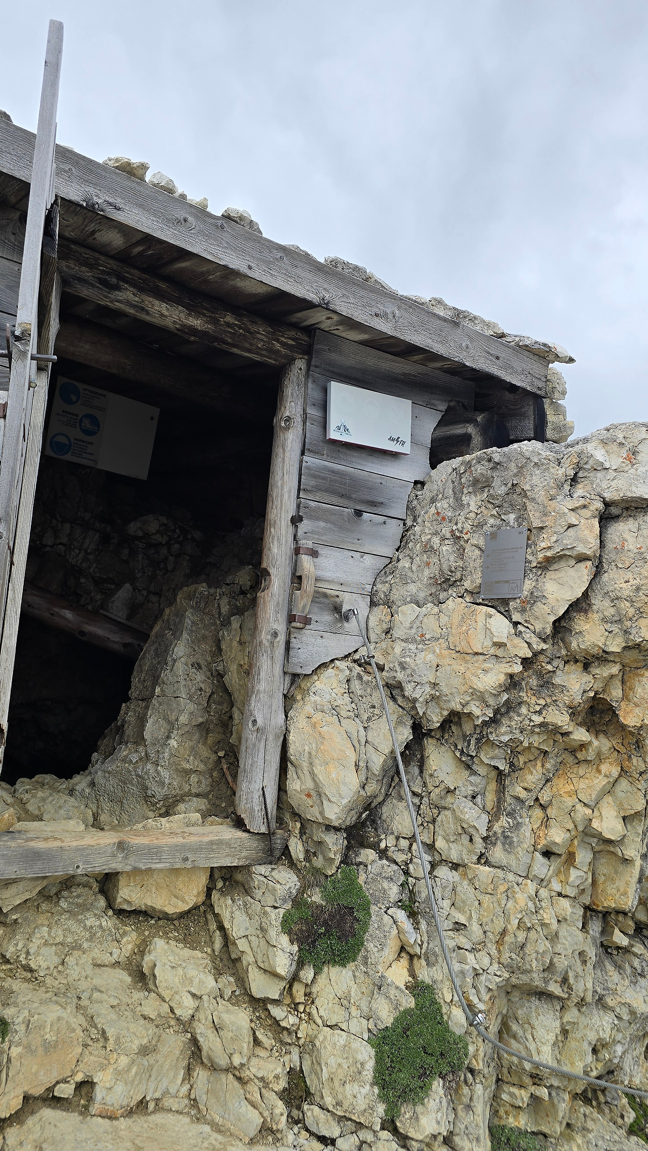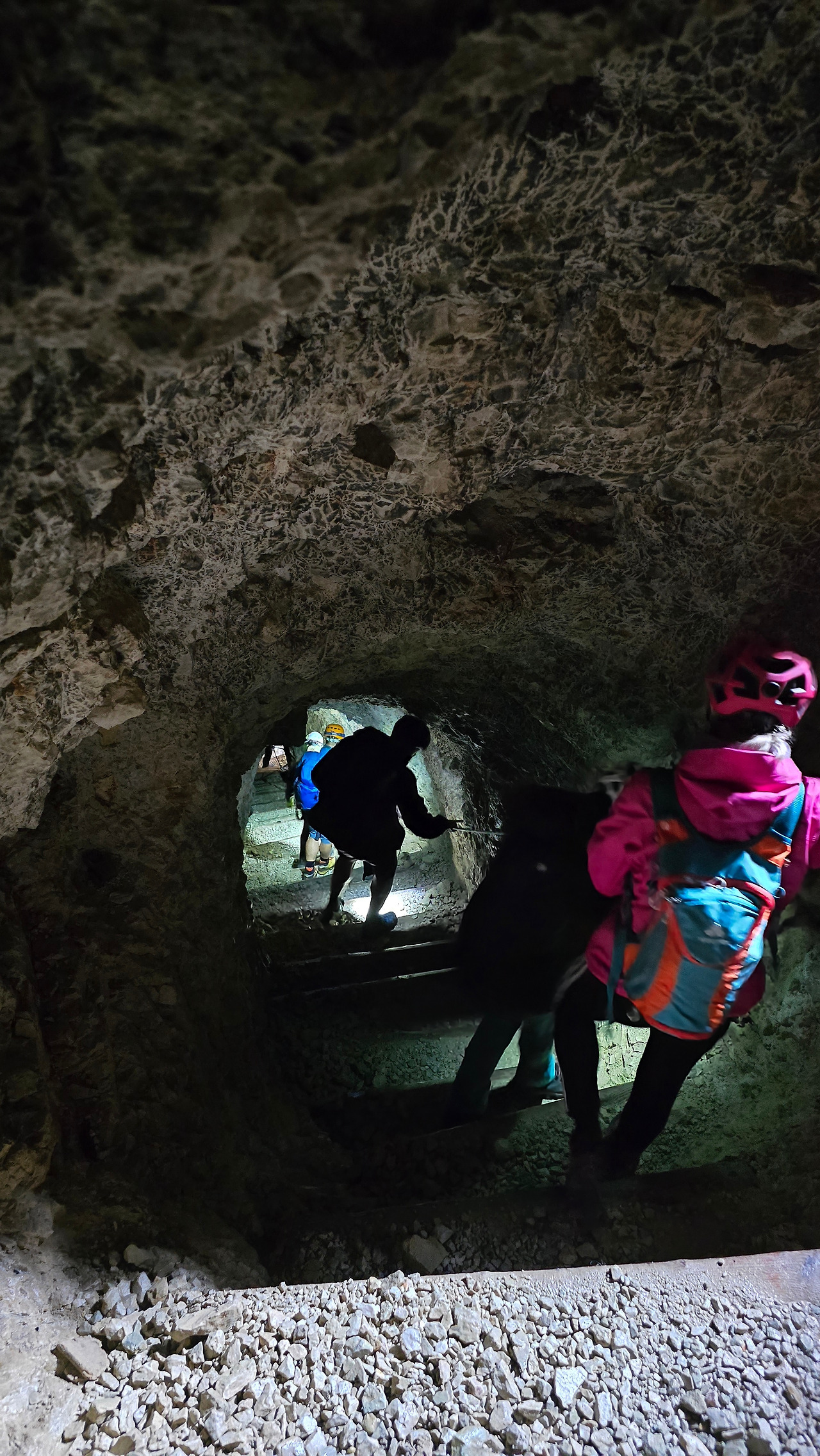 여행 중 만난 이탈리아 사람들은 친절했다. 특히, 돌로미티 산행 중에 만난 사람들이 더 그랬던 것 같은데, 우리도 산에서 만나면 친절하지 않던가. 위 사진들은 라가주오이 산장에서 케이블카를 타지 않고 걸어서 저 아래 차도까지 동굴을 통해 내려갈 때 찍었다. 거의 1,000m 구간을 내려가야 하는데, 30~40분 정도 동굴 속으로 내려갔던 것 같다. 오른쪽 위 사진이 동굴 입구이다. 이곳에서 잠시 기다렸더니 가족으로 보이는 7~8명이 함께 내려가려고 했다. 같이 가도 되냐고 했더니 기꺼이 동의를 해줬다. 랜턴도 없고 보호헬멧도 없던 나를 아주 천천히 동굴 출구까지 안내해 줬다. 이 동굴은 1차 세계대전 당시 이탈리아군이 라가주오이 산을 점령했던 오스트리아-헝가리 군을 물리치려 굴을 팠다고. 결국, 이탈리아 군이 라가주오이 산 주변을 정복했다고 한다.