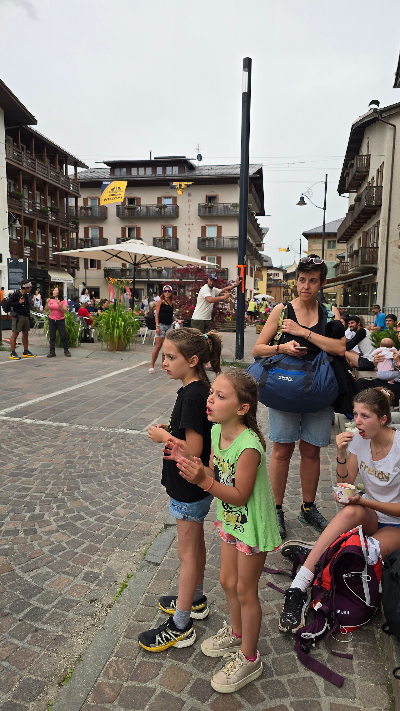 LAVAREDO는 지명이다. 트레치메 라바레도. 행사명칭은 UTMB인 것 같다. 트레일 월드 시리즈? 이건 행운이다. 돌로미티 동쪽에 있는 도시 코르티나 담베초는 마치 모든 돌로미티 여행의 중심지 같다. 어느 날 구간 트레킹을 일찍 끝낸 날이었다. 도시 구경을 가게 되었는데, 그날 그곳 중심가에서 트레일 월드 시리즈 경기가 있었다. 마을 전체가 축제 분위기였다. 마침 도착한 그때가 트레일 경기가 시작된 후 하루 지난 시간이었다고 한다. 우승자는 10시간 정도 걸렸다던가? 이건 정말 완주가 목표인 스포츠다. 사진 찍을 때 들어오던 사람들은 24시간이 지난 후 들어온 사람들이다. 이 순간만큼은 무슨 경쟁이. 의미가 없어 보였다. 하루 종일 걷거나 달렸을 피곤한 엄마를 딸이 반갑게 마중 나왔다. 모녀는 그렇게 같이 결승전을 통과했다. 주변 사람들이 특히 열광적으로 환영을 해주었다. 마을 사람들 모두가 나와 환영을 해주었는데, 아쉽게도 한국인 아저씨가 들어오는 것은 보지 못했다. 그분 자식들이 길가 모퉁이에서 초조하게 아버지를 기다리고 있었는데, 출발한 지 하루가 지난 자기 아버지를 기다리는 자식들 심정도 심정이지만, 이들을 보러 포기하지 않고 들어왔을 그 아저씨에게 힘찬 박수를 그날 보냈었다.