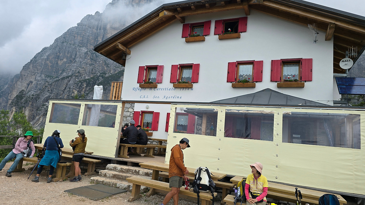 떠난다. 죽는 건 아니고. 죽는다는 감정은 정말 어떨까? 그건 그때 생각하기로 하고. 안녕! 만날 때 반가워서 하는 인사가 아니다. 떠날 때 하는 안녕인데 기분이 썩 나쁘지 않다. 안도감? 누가 들으면 무슨 애인이라도 되는 듯이 말하다니. 치베타는 산(Monte)이다. 높이 3220미터 높이의 산. 역시나 유네스코 세계자연유산. 산을 중심으로 전체 산군으로 이뤄졌다. 이 산 정상을 오른 것도 아니다. 어제부터 그냥 지나갔다. 산을 왼편으로 두고 걸어왔고, 역시나 그 큰 산군을 두고 내려간다. 어제 돌로미티 여정을 마무리한 곳은 마리오 바졸레르(Mario Vazzoler) 산장이었다. 이 산장은 그저께 잠을 잔 산장 꼴다이(Coldai)보다 여건이 훨씬 좋았다. 그것뿐이랴. 여기에 도착하자마자 성모 마리아께서 반갑게 맞이해 주셨다.