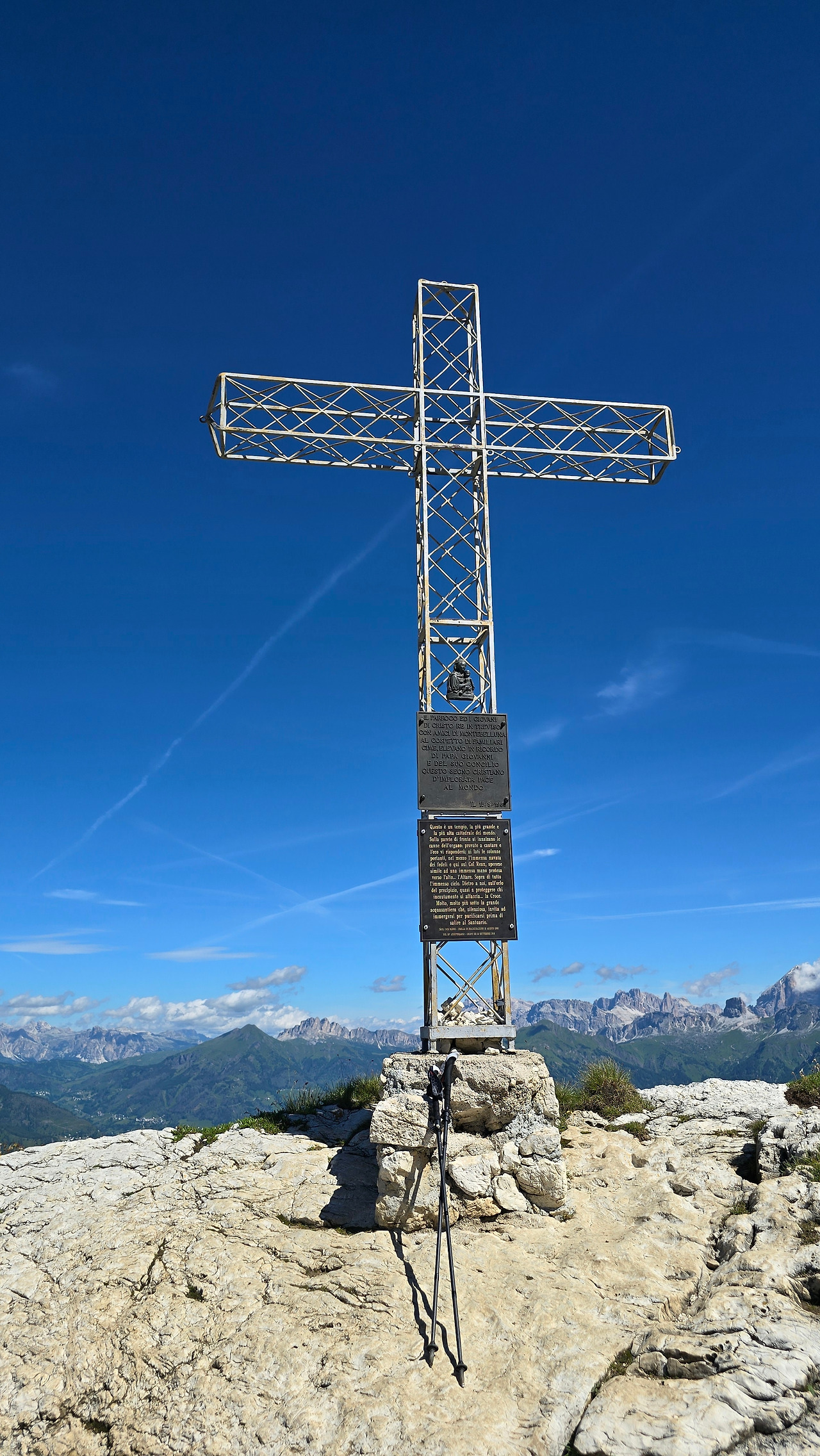 잘 빠져나오는가 싶게 나오면서 일행을 보니, 일행이 이상하게 산을 기어오르고 있었다. 저건 오늘 가야 할 길에서 벗어나는 건데? 다시, 입에서 구시렁구시렁거리며 걷다가 일탈에 대한 참회로 늦더라도 일행에 합류하자, 남들이 간 길도 분명 이유가 있으리라 하고 따라잡은 곳이 바로 벽 중의 벽에서 봤던 그 높은 언덕배기로 그곳으로 사람들이 기어오르고 있었다. 따라잡아 도착하니, 몇몇은 맥주 삼매경에 빠져있고, 그 일행은 항상 그랬으니, 일부는 보이지 않았다. 그 뒤 더 높은 곳에 올라가 있었던 것이다. 맥주를 마시던 장소는 티시 산장이었고, 저 멀리 보였던 십자가가 있던 곳이 바로 정상이었다. 그곳에 설치된 십자가가 어설퍼 보여 부지런히 올라갔더니 그곳이 바로바로 꼴 레안(Col Rean)이었다.