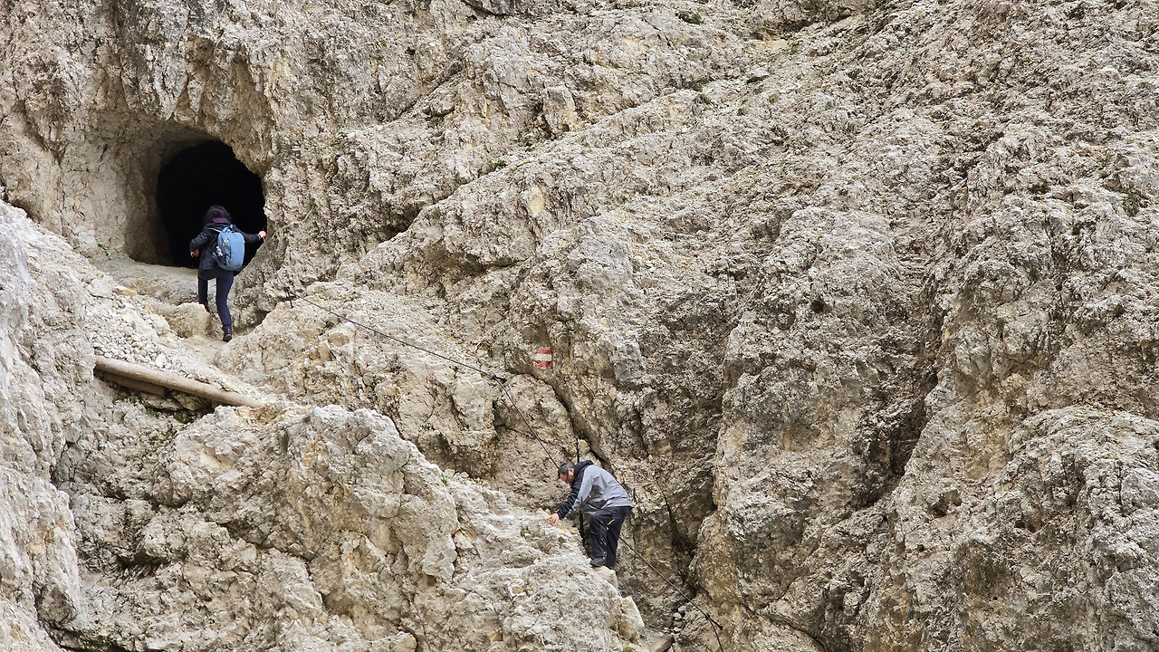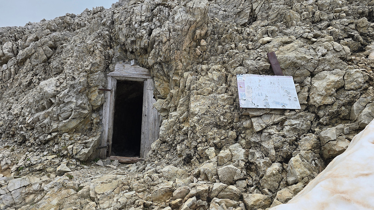 하나 더. 산장에서 리프트를 타지 않고 하산하는 방법은 중간에 동굴 혹은 터널을 통해 내려오는 것이다. 대부분의 트레커들이 이를 모르고 그냥 가는 것 같기도 한데, 몰라서이기도 하지만 숙소에 따라 하산 방향이 달라서 일 것도 같다. 중요한 건 리프트 타고 쓩하고 빠르게 내려오면 뭐 하라고? 터널의 길이가 총 1,000미터 된다는데 30~40분 정도 걸린다고 했었다. 리프트만 빼면, 이 방법이 아래 대로변으로 갈 수 있는 가장 빠른 방법도 같은데. 이곳을 혼자 내려가려다, 헤드랜턴도 안전모도 없이 혼자 온 이방인을 동굴 아래 입구까지 친절하게 안내해 준 이탈리아 가족들 덕분에 편안히 내려왔다.