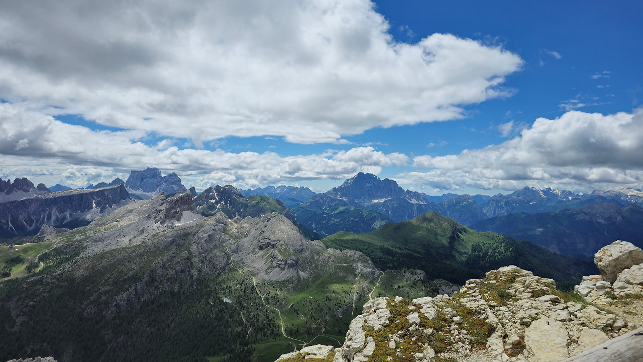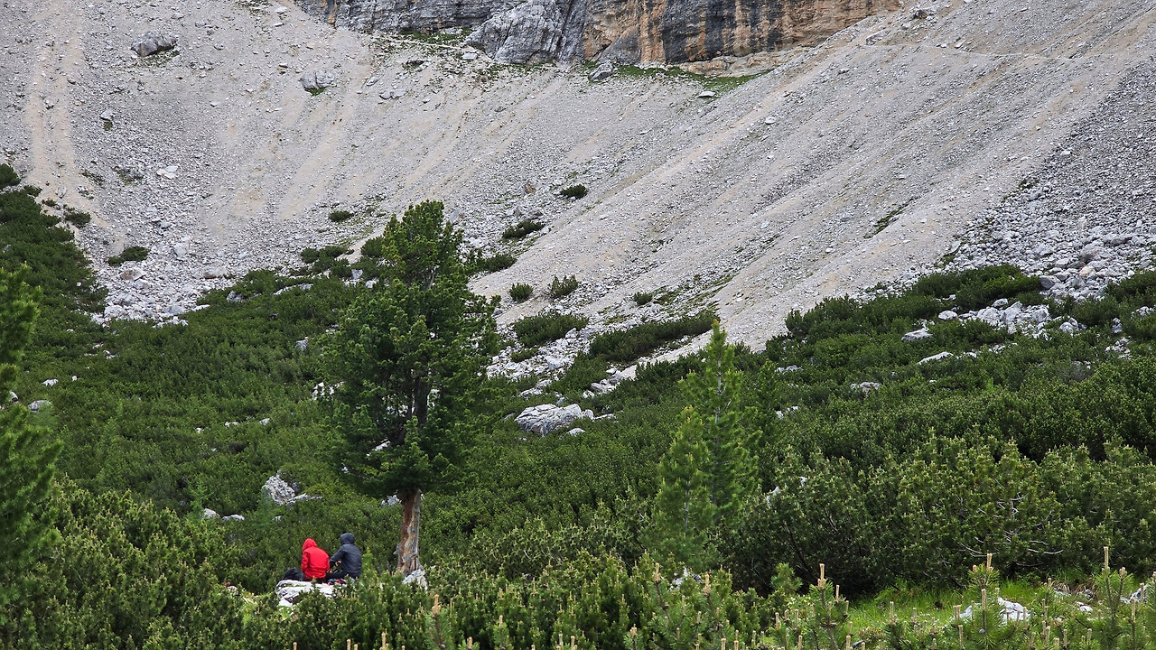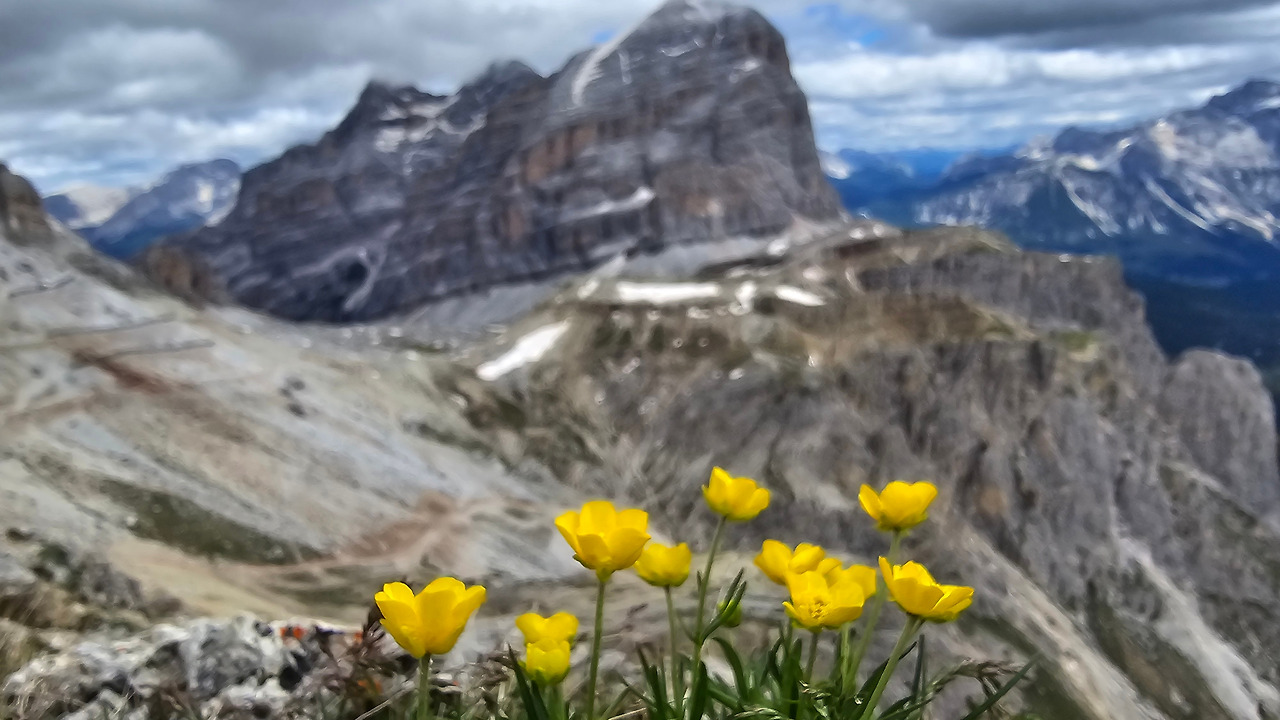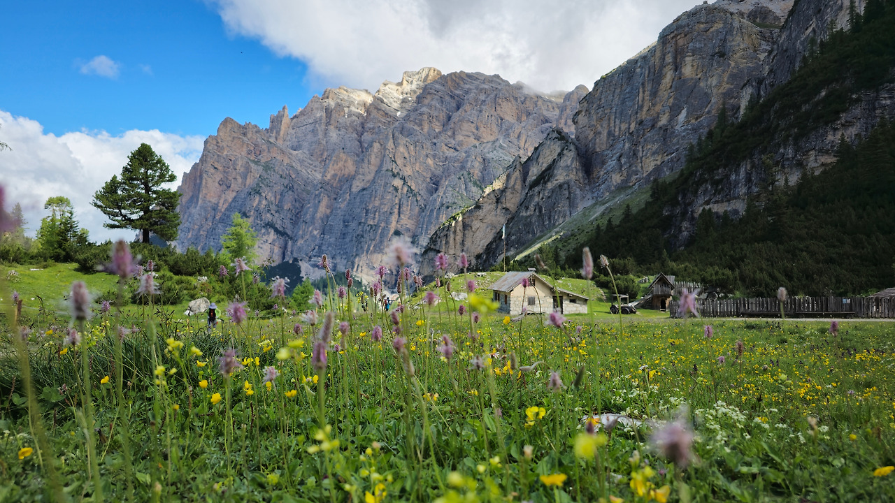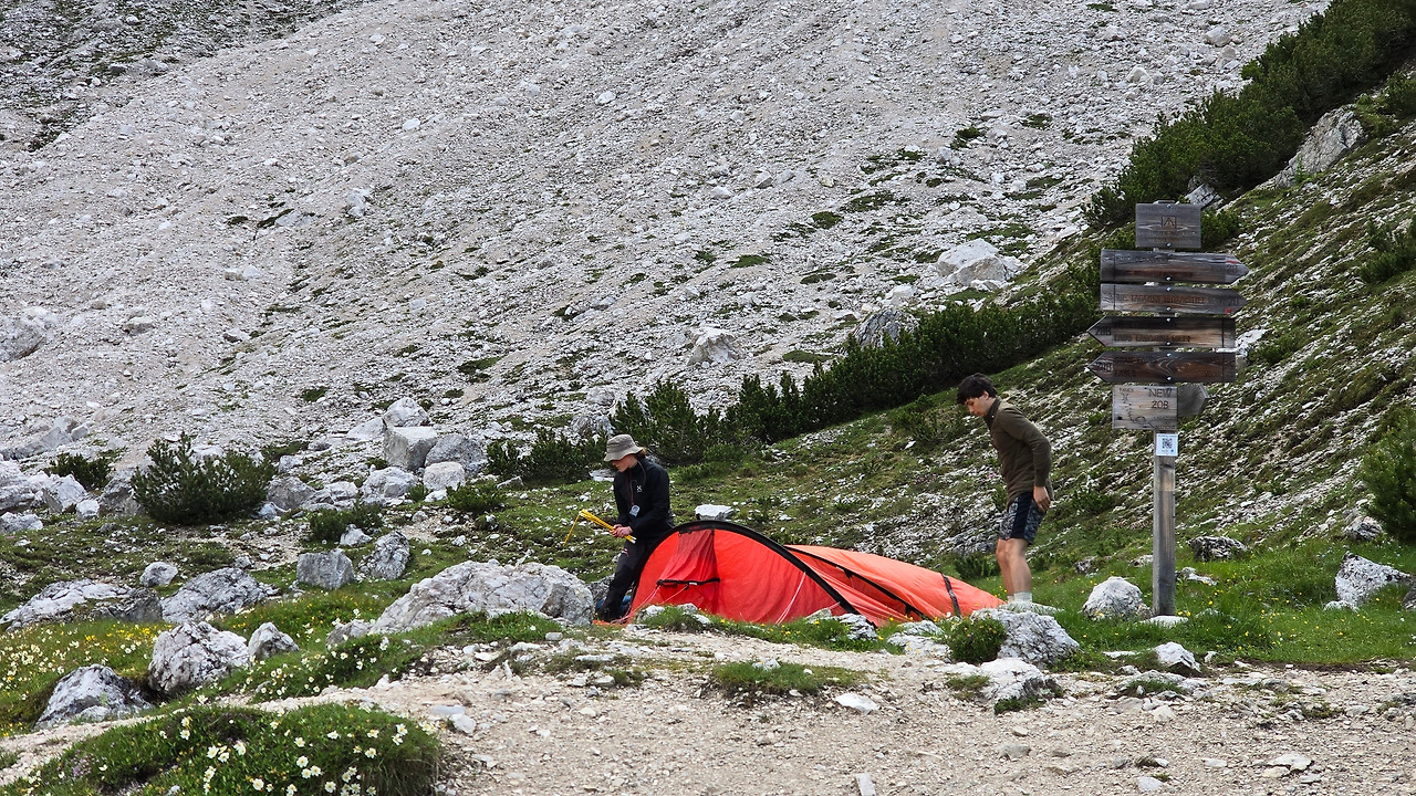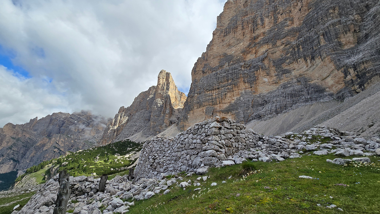 산 중턱쯤 젊은이들이 보인다. 캠퍼들이다. 그들을 지나니 여기저기 세월의 흔적들이 흩어져 있다. 여기 사람들이 살았었나? 아니면 옛날에 산장이 있던 자리? 이렇게 무상한 시간이 주는 감상에 젖어들며, 황량한 들판에 퍼진 야생화들을 감상할 때 가지 몰랐었다. 정말, 몰랐었다. 이곳이 얼마나 멋진 곳인지를. 이곳이 1차 세계대전 당시 오스트리아 군과 이탈리아군이 피 터지게 싸운 전적지라는 것이 이상할 정도로 아름다운 이곳에서, 자타 공인 알타 비아 1 최고의 풍경 맛집이란 것을 바위로 이뤄진 고개를 박박 기어오르기 전까지 몰랐었다.