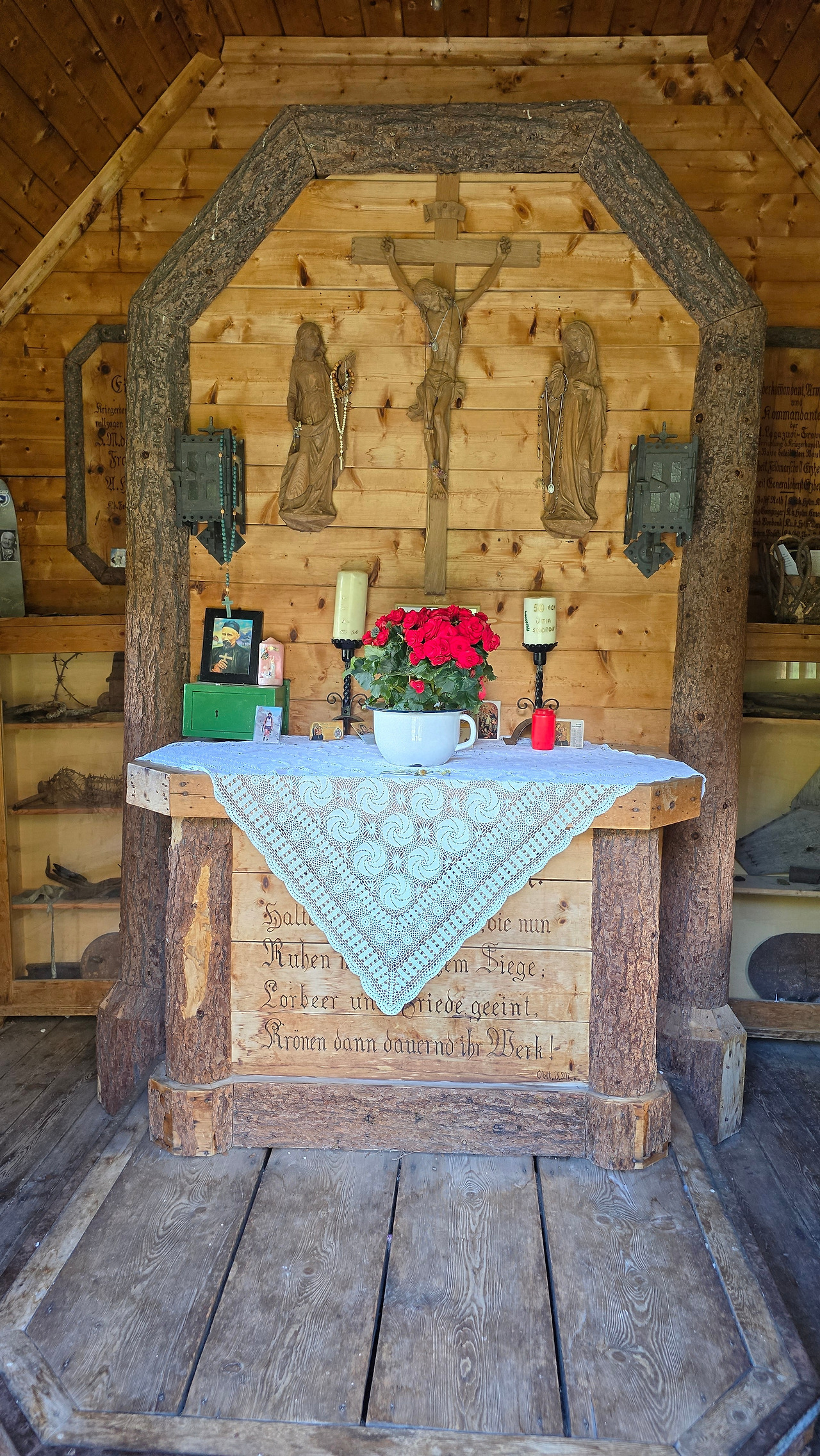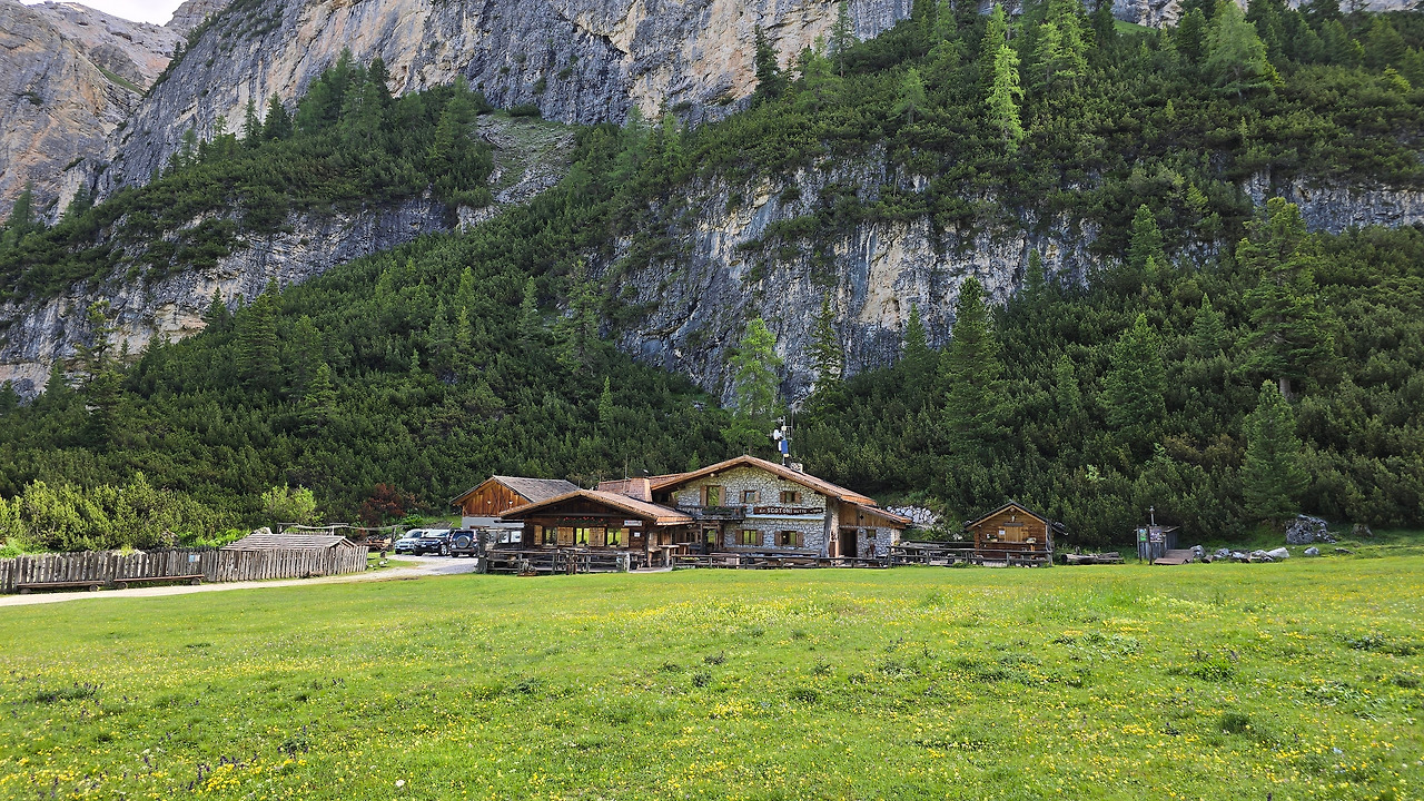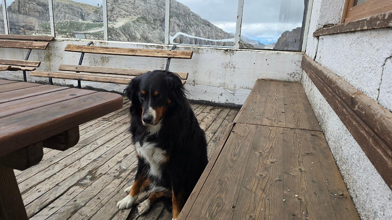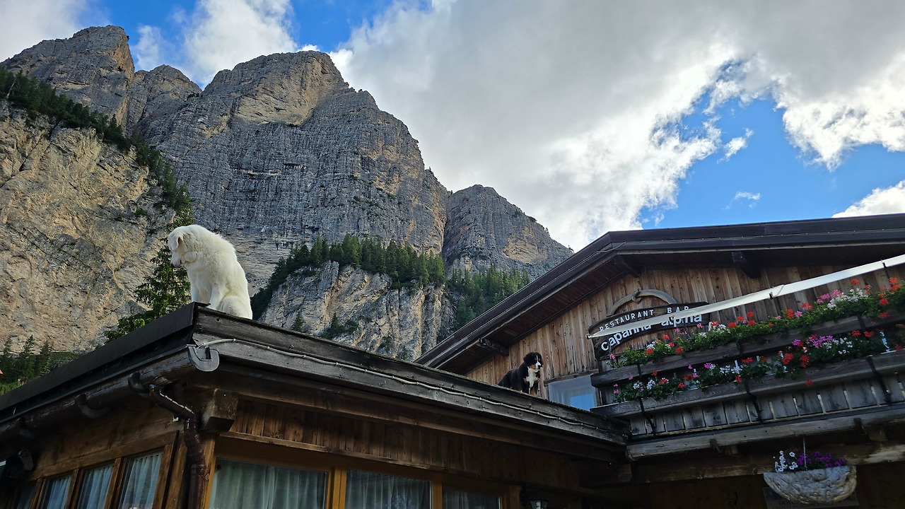어제처럼 오늘도 개 두 마리가 먼저 반긴다. 짓는데 반갑다고 짓는 건지 경계한다고 짓는 건지 알 수가 있나? 그냥 그렇게 믿는다. 어제 세네스 산장(Senes)을 떠날 때 시작된 비가 하루 종일 뿌린 덕에 이곳 카파나 알피나(capanna alpina) 레스토랑에서 마신 핫 초콜릿 향기가 아직도 남아있는 듯하다. 어제 추웠었다. 이곳을 떠나 언덕길을 오르자 스코또니(Scotoni) 산장이 나왔다. 어제 여기서 잤으면 하는 아쉬움이 들 정도로 끌렸다. 왜 그랬지? 산장 앞 너른 공터에 야생화가 만발했다. 산장 모양새도 아늑해 보이고. 그런 산장을 벗어나자마자 조그만 기도처가 나온다. 나무로 만든. 여긴 누가 관리하는 걸까? 누가 기도하러 오지?