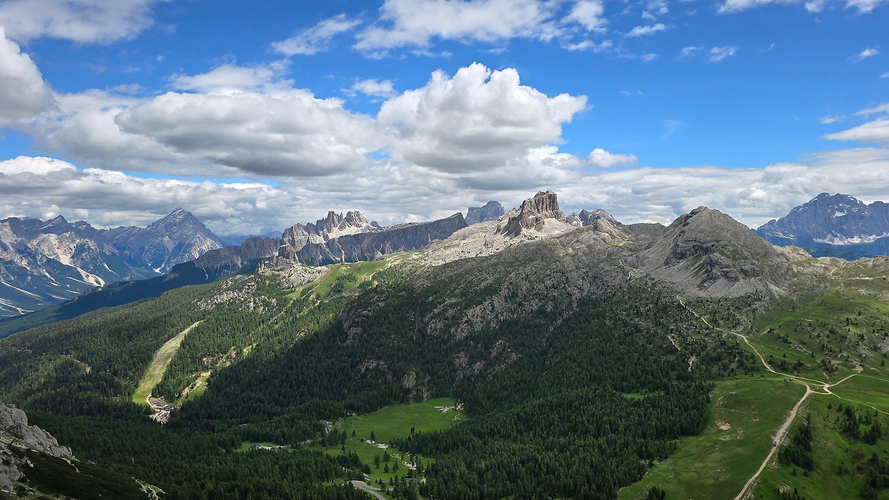 터널을 지나기 전과 지나는 중에 터널 내부, 터널 밖 경치와 터널을 나온 후 맞이 한 광경들이 약간 비현실적이게 다가왔지만, 팔자레고 언덕(Falzarego Passo)에 도착해서야 현실로 돌아올 수 있었다. 오가는 차들과 바이크족과 자전거 라이더들 때문에. 이곳이 지상이니까!