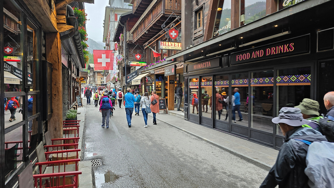 다들 움츠렸던 마음과 몸을 다 잡으려는 듯 걷고자 빠르게 움직였다. 그렇게 체르마트 시내를 관통해서 마테호른 방향으로 가다 오른쪽으로 들어섰다. 그렇게 체르마트 트레킹을 시작하려 했는데. 결론적으로 계획했던 체르마트 주변 트레킹도 끝내지 못했다. 그건 길이 역시나 폭우로 막힌 것이다. 등산로가 폐쇄되어 올라갈 수가 없었다. 그런 후 각자 일행이 흩어지기 시작했다. 시내 관광을 즐기겠다는 파와 산 쪽으로 더 올라가겠다는 파와 시내와 인접한 트레킹 코스를 왕복으로 둘러보겠다는 파가 나뉘었다. 역시나, 파벌 싸움(?)이 시작되었다.
