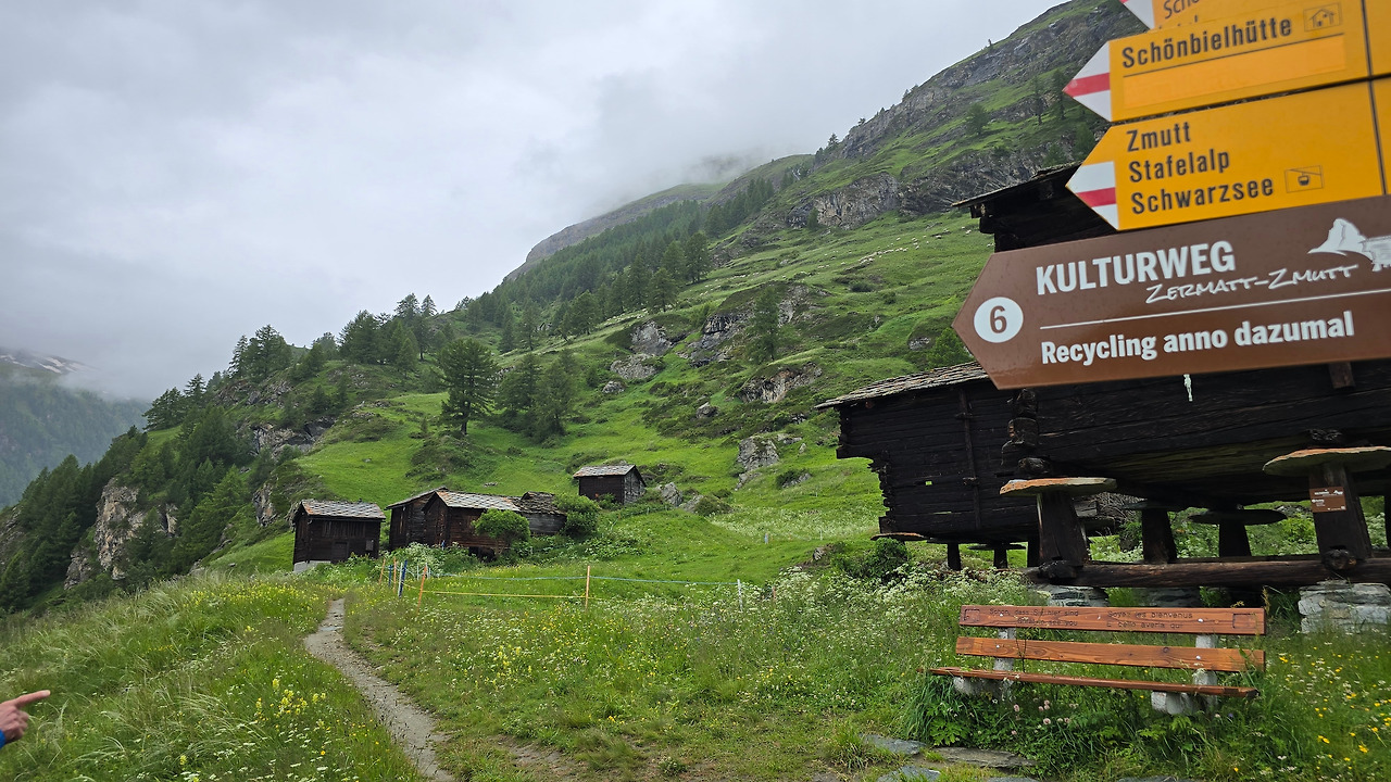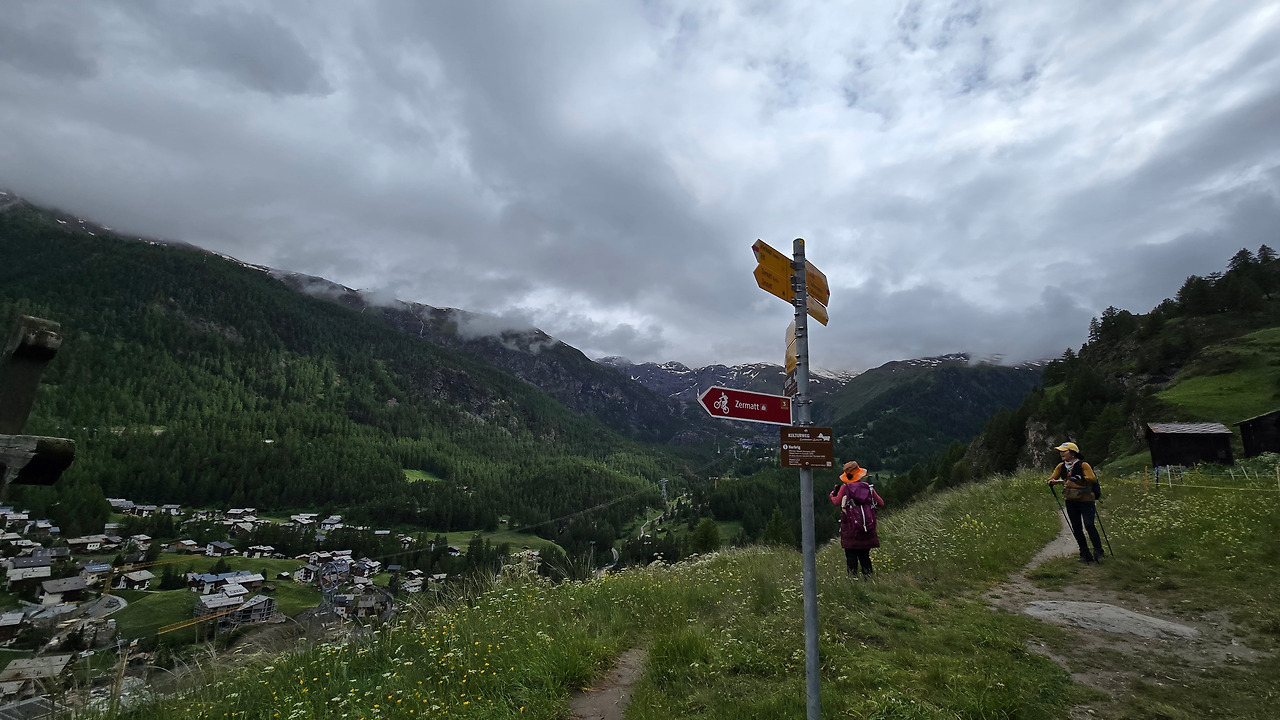 타쉬에서 체르마트는 얼마 걸리지 않았다. 5km라니 열차라면 몇 분? 스위스야 열차 빼면 시체 아니던가. 날씨가 여전히 구려 몸은 움츠렸지만, 마음은 기대감에 아드레날린이 뿜어지고 있었다. 그렇게 대강 배낭을 챙겨 숙소에 자리를 잡았다. 아주 복잡하게, 비밀번호가 맞지 않아, 숙소 입소를 끝내고, 밥 먹고, 할 일을 했다. 할 일이란 거야 당연히 트레킹. 하루 일정이 계획에서 빠졌으니, 그건 수네가 호수를 걷는 거였다. 시간으로 보면 굳이 못 갈 이유도 없었지만 어쩌겠는가? 단체로 왔으니.