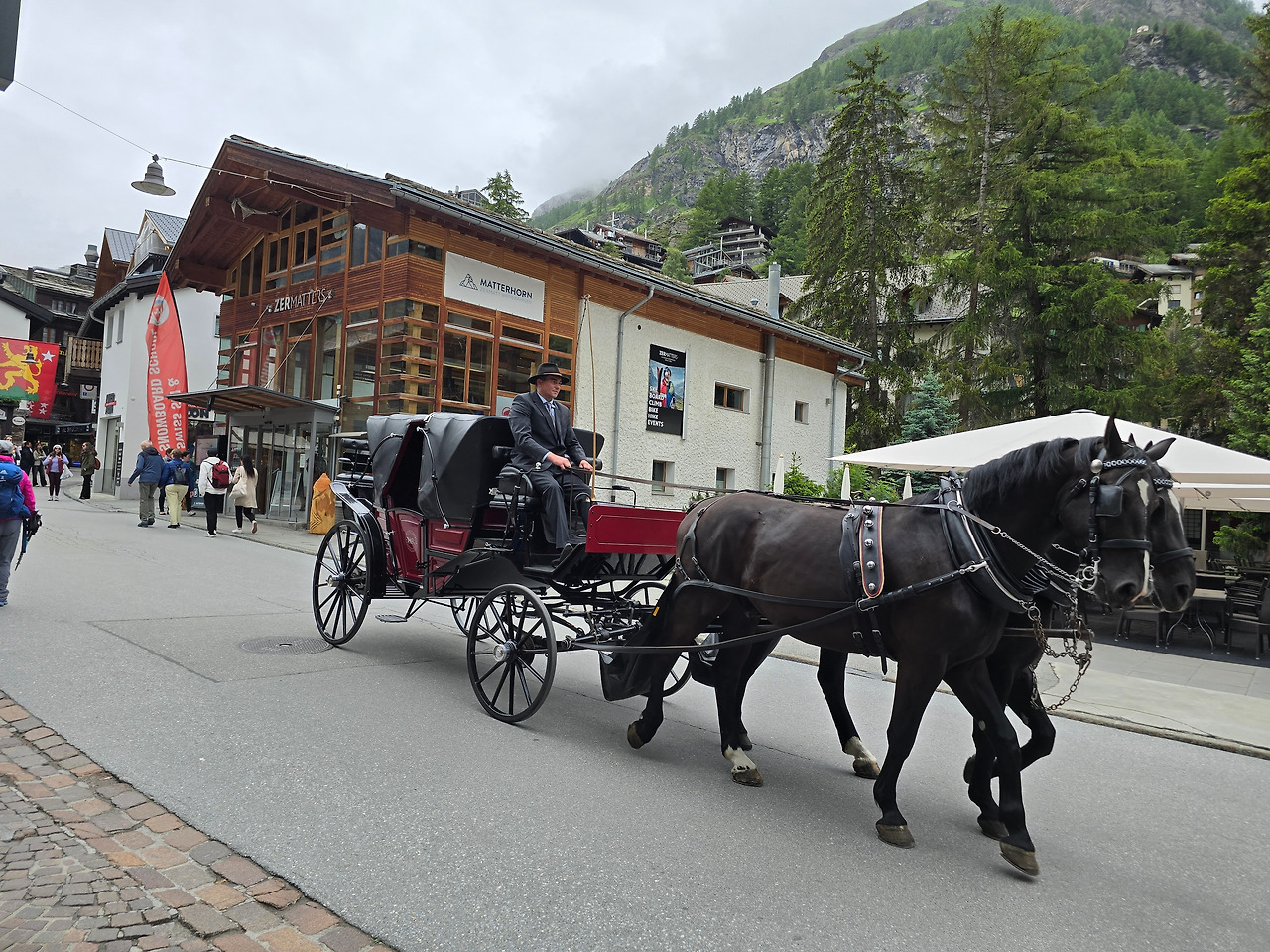 오늘은 도시 끝 주차장까지도 차가 들어오지 못했다. 그래서 어떻게 했냐고? 앞에서 언급한 타쉬(Täsch)에서 열차를 타고 체르마트까지 들어올 수 있었다. 배낭 등 짐은 숙소까지 다마스(?)가 배달해 주고. 이 차는 꼭 짐만 운반하지 않고 당연히 사람도 운반한다. 시내에서는 마차가 있지만 이건 관광용 마차라서. 암튼, 흥미진진했다. 낯선 땅에서 어려움을 겪는다면 어떻게 대처할지 조금 알게 된 하루였다. 이것도 여행이다. 여행!