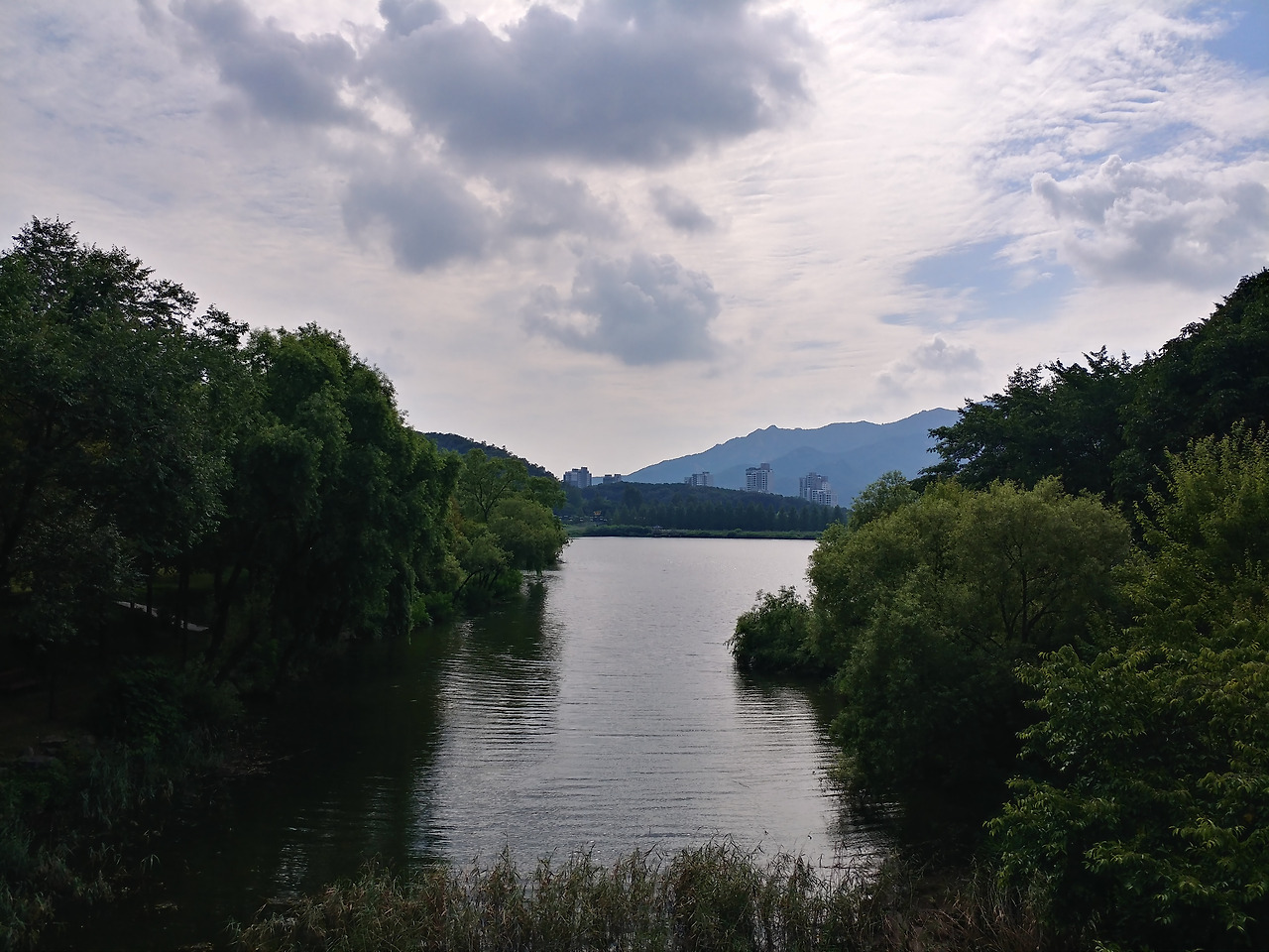 오랜만에 가방에 먹을 것을 넣고 걸어서 갔다. 그렇지. 미술관에 당연히 걸어서 가지. 뛰어갈까? 아님, 차 타고? 어느 미술관이건 적정거리부터는 당연히 걸어가야 한다. 그런데 이 거리에 볼 것이 제법 있다. 우선, 호수다. 비록 인공 호수지만 그곳에서 바라보는 미술관 경치도 남다르다. 그 배경엔 엄마 품 같은 청계산이 둘러서 있다. 병풍처럼 이라고 하기에는 좀 부족하지만 미술관과 산이 주는 어울림이 계절이 바뀌면서도 결코 가치가 떨어지지 않는다. 그렇게만 보던 경치를 이제 미술관 옥상에서 내려다볼 수도 있다. 물론, 청계산 매봉이나 망경대에서 보는 경치가 더 멋지지만 그건 발품을 팔아야 한다. 그것도 아주 많이.