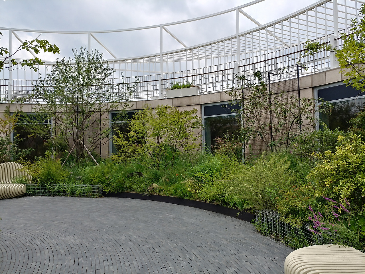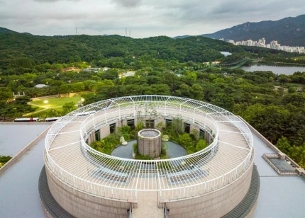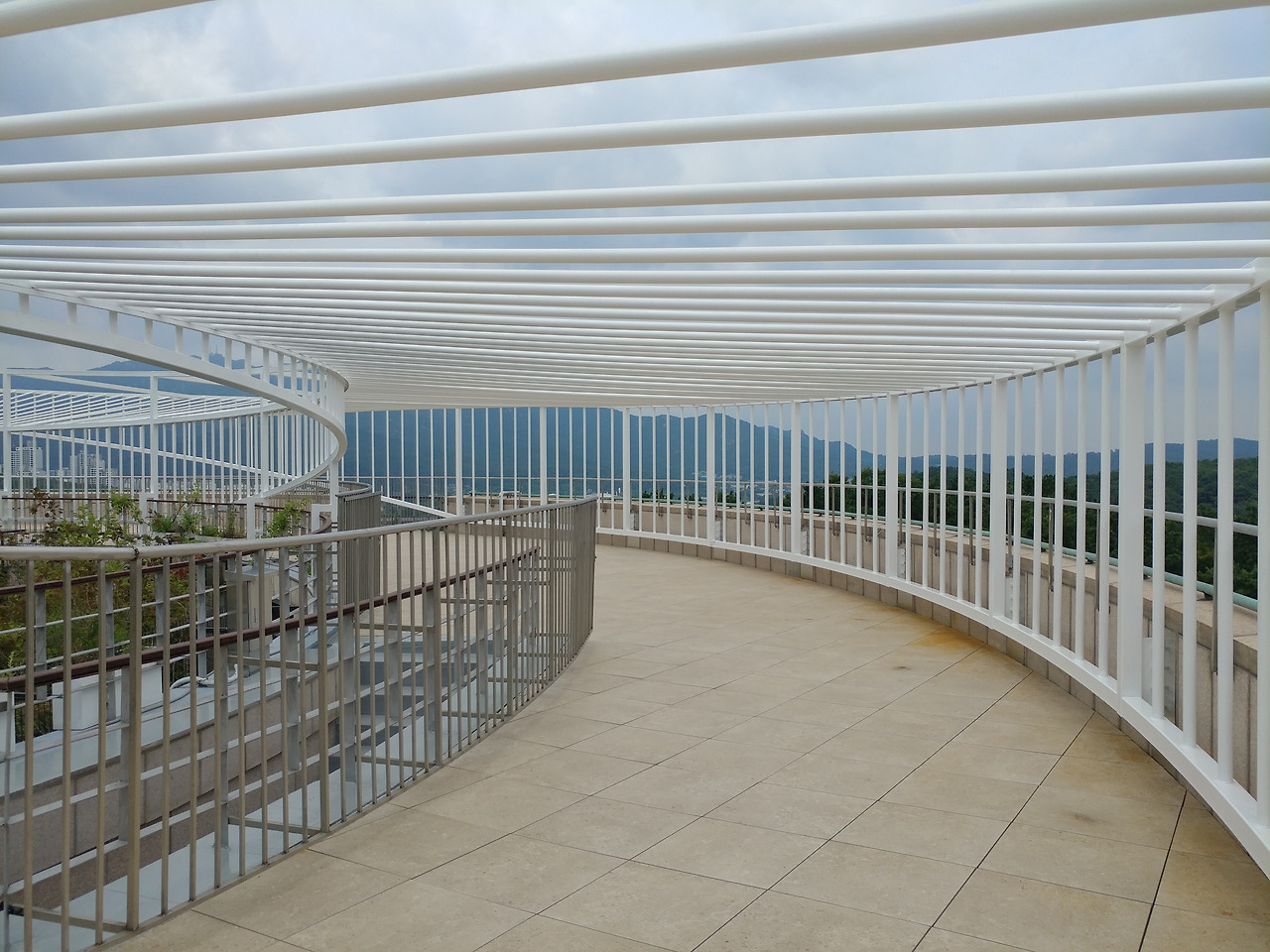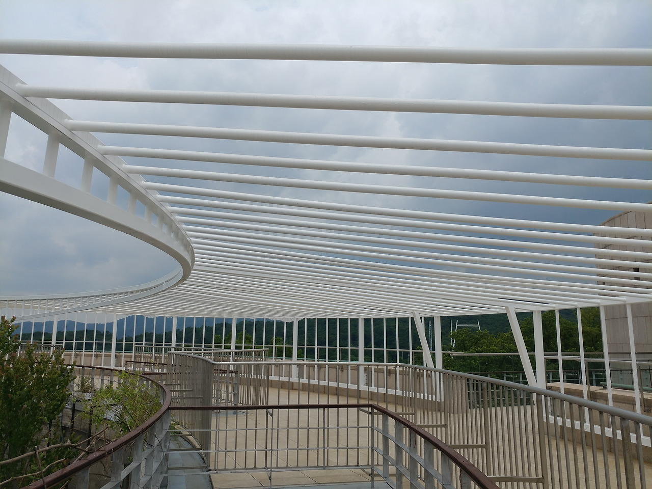 바로 이거였다. 이걸 보려던 것이다. 누구 아이디어였을까? 원래 텅 비었을 옥상에 이런 아이디어를 내다니. 여름이니 덥기는 했지만 예상한 그대로다. 결국, 이 공간도 공유 공간이 되었다. 공간을 재생해서 말이다. 공간 재생이란 말이 익숙하지 않았는데, 이제 당연한 말이 되었다. 이곳은 그저 그런 공간이 아니었다. 공공건물이지만 옥상만큼은 공유되지 않았는데, 이를 확장한 것이다. 다시 말해서, 미술관의 관람 영역을 내부에서 옥상으로 확대한 것이다. 그래서 기존의 멋진 미술관 주변 풍광이 확대되었다. 멀리서 미술관을 바라보던 시각이 확장되어 이제 미술관 옥상에서 경치를 내려다볼 수 있게 된 것이다.