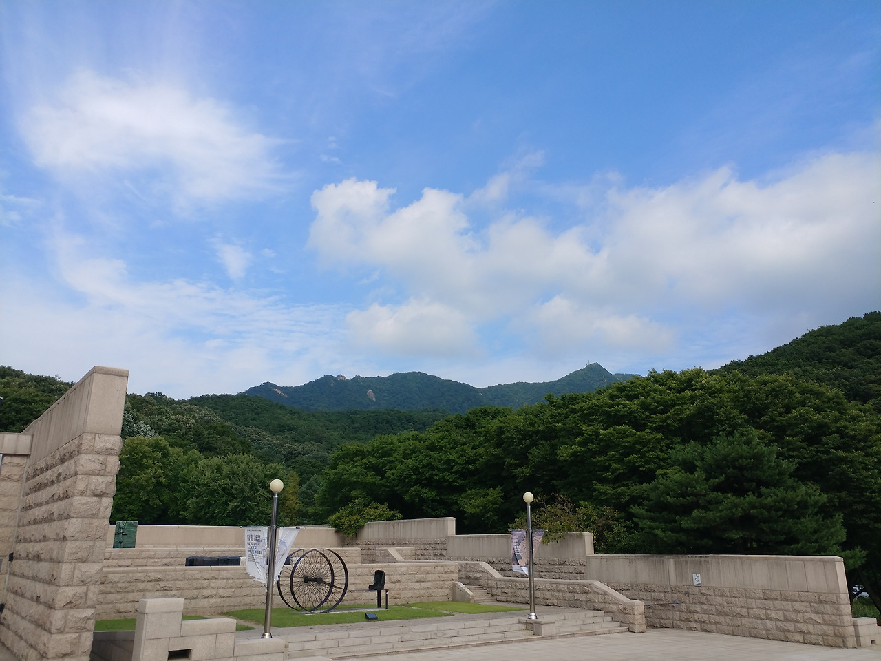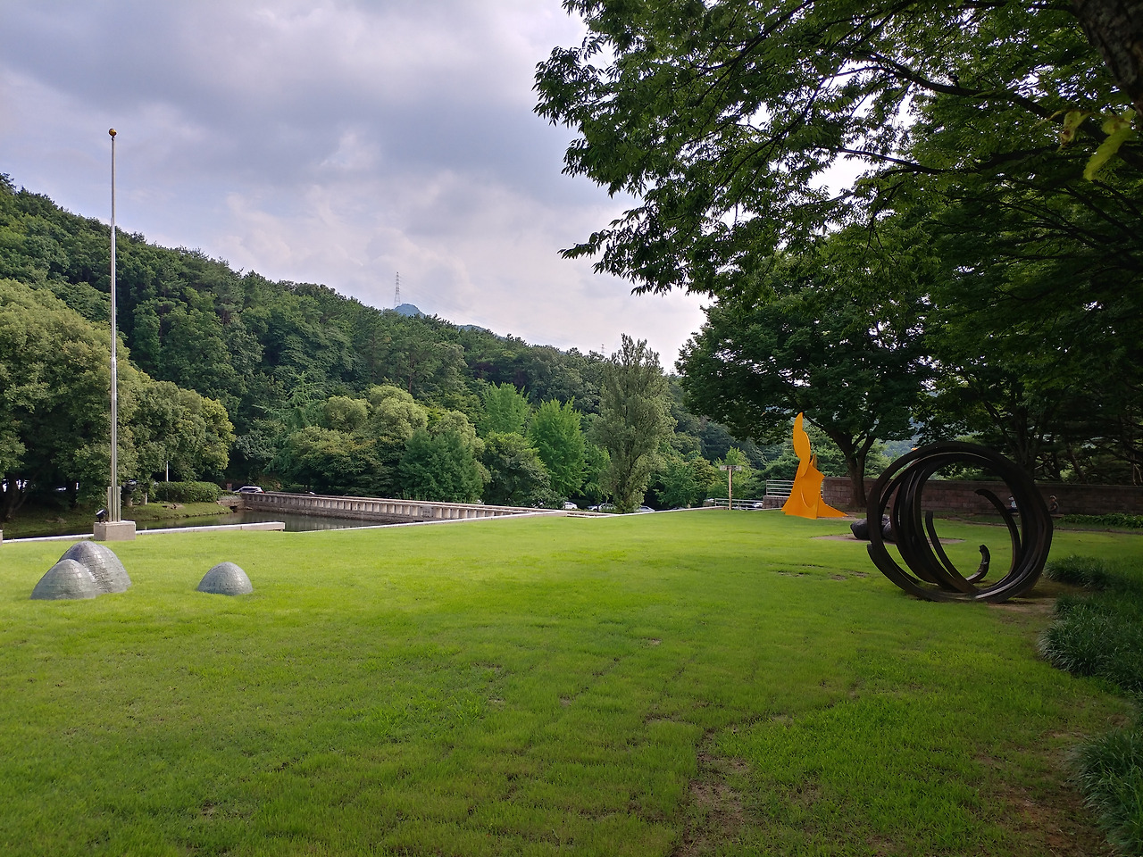그런데 역시나 '시간의 정원' 뭔데? 그렇군. 그게 제일 중요할 수도. 조호건축의 이정훈 대표 말에 따르면, "일정 간격으로 늘어선 파이프의 배열이 자연과 어우러진 야외 공간에 리듬감을 더하고, 빛과 그림자, 바람 등 공감각적 경험을 통해 입체적으로 감상할 수 있게 한 것"이라는데, 잘 모르겠다. 그냥 좋다. 앞뒤로 보이는 관악산과 청계산도 좋고. 그러고 보니 정원에 시간이 '머물긴 머문 것' 같다. 가져간 책도 반은 읽었으니, 시간을 머물게 했으니, 꿩도 먹고 알도 먹은 알찬 하루다.