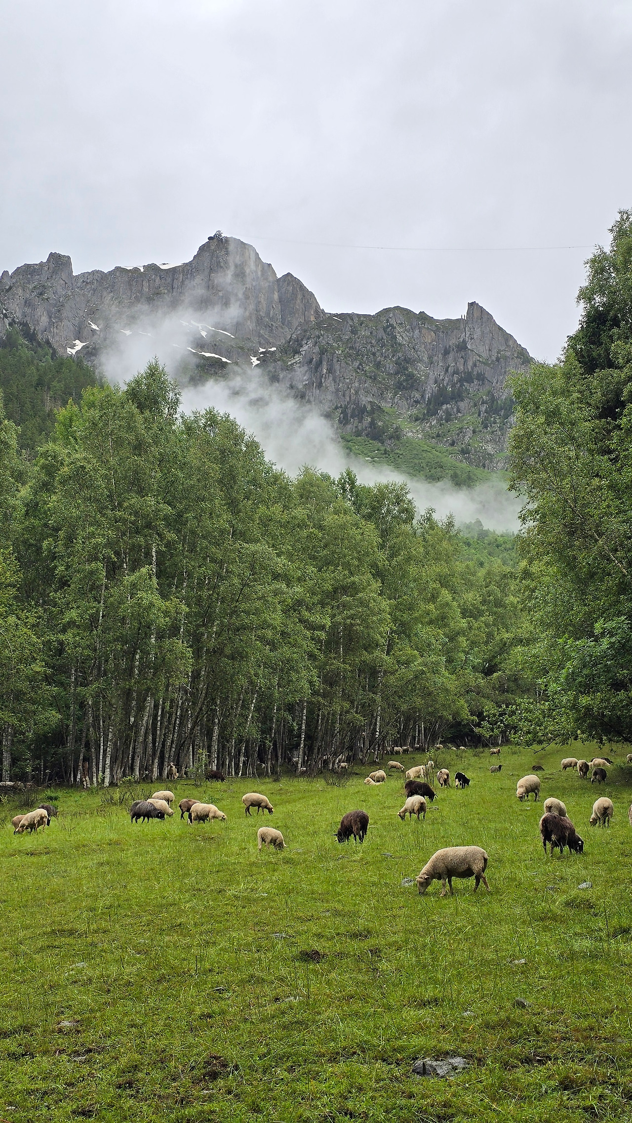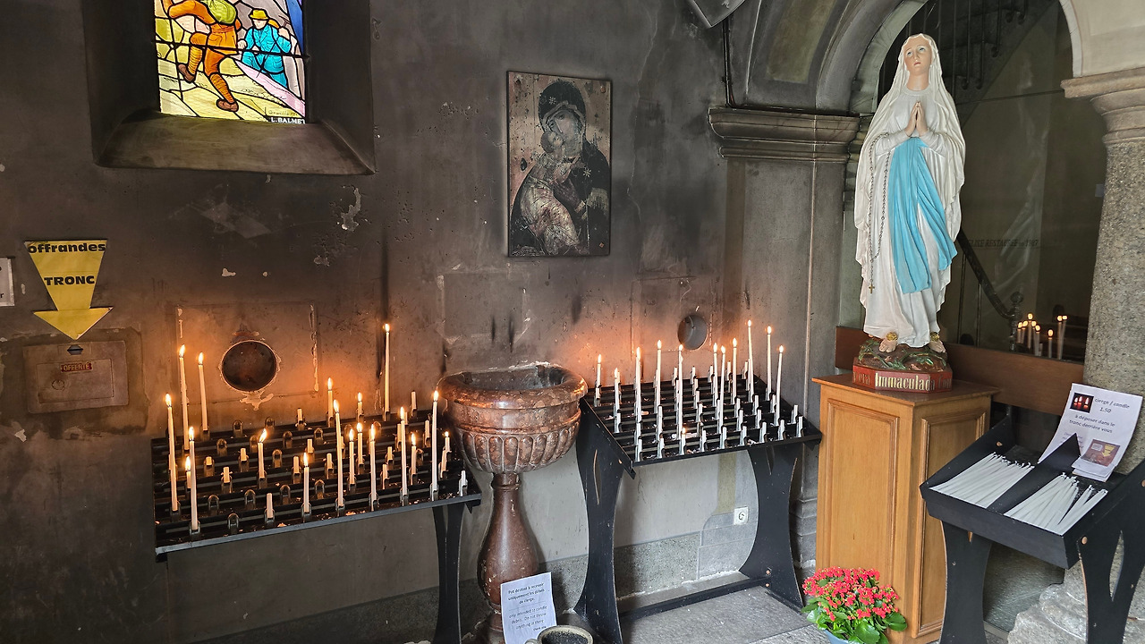 제법 관목 지대를 지나 내려가니 울타리 안에 개들 세 마리가 달려든다. 에구 무섭다. 울타리가 있어서 다행인데, 이놈들이 뭔 일하나 봤더니 양을 지키는 것 같다. 종류가 뭐더라? 덩치가 산만해가지고. 이종이 세인트버나드 같다. 그렇고 보니 비가 그쳤다. 위라서 날씨가 더 짓궂었나 보다. 내려오니 언제 그랬냐는 듯이 마음도 금방 변했다. 여기서부터는 노 미스티. 여기서 선택지가 하나 더 있다. 시내에 남을 사람 남으라고 한다. 당연히 남아야지. 그렇게 일행과 헤어진 곳이 하필이면 성 버나드(세인트 베르나르) 성당 앞이다. 가만있어라. 앞에 개가 세인트 버나드 아니었나? 그 개 종류가 세인트 버나드라면 이런 우연이 있나. 개 이름을 성인이름 따서 지었다고 한다. 참, 개가 개가 아니다. 성인 이름이라니. 그런데, 살면서 죄를 얼마나 많이 졌으면 내린 곳이 성당 앞이다. 어쩌겠는가. 들어가서 참회해야지.