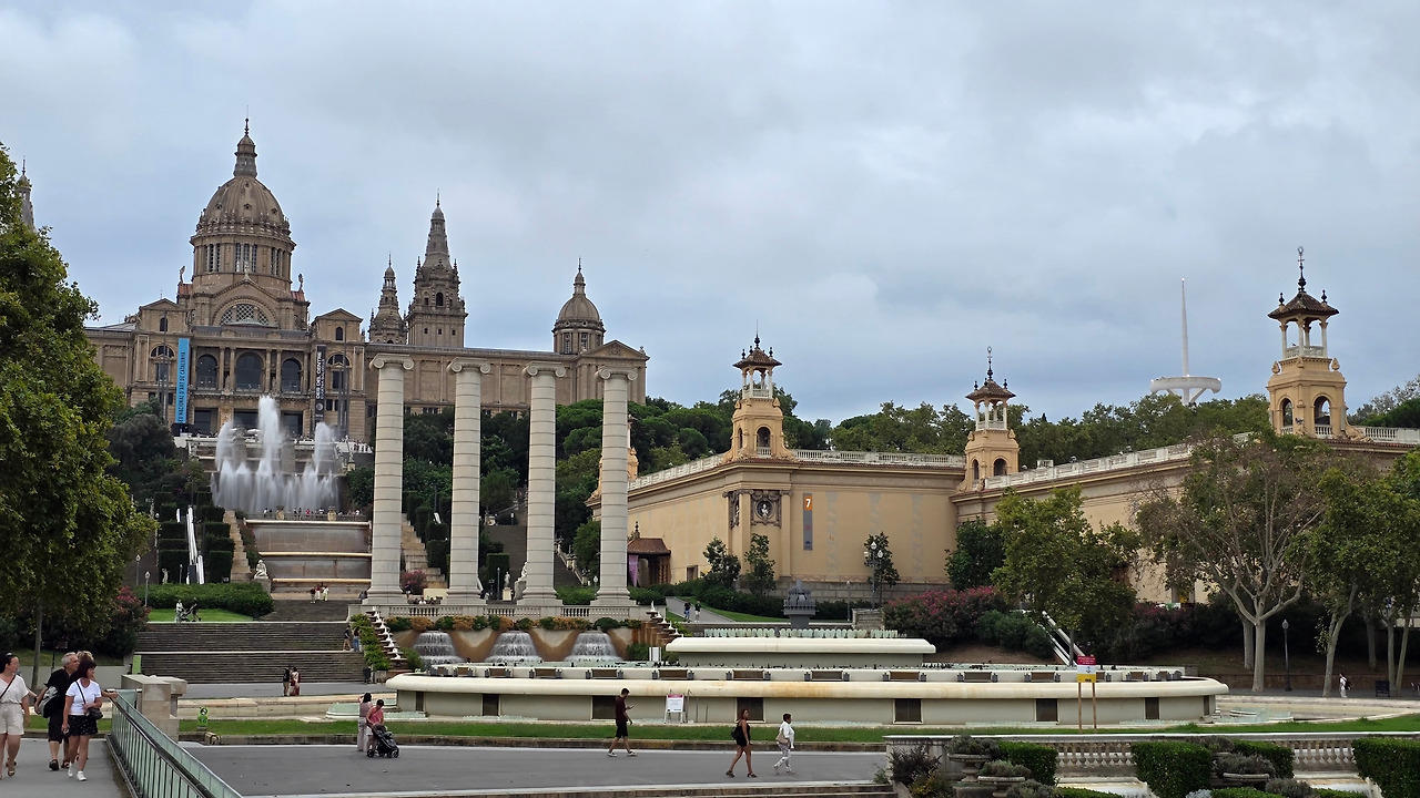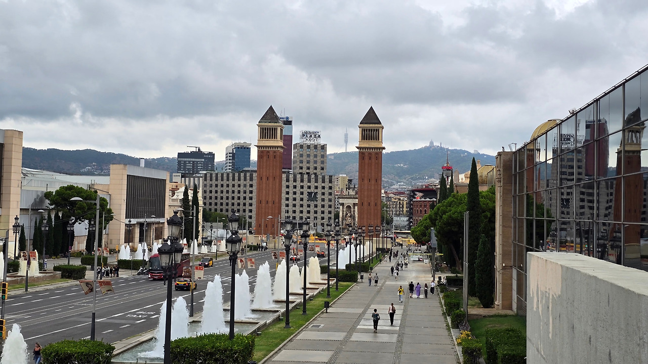 미술관이란 건물을 멀리서 봤을 때 주변과 꽤 잘 어울린다고 느꼈는데, 가까이 보니 더 웅장했고 근사했다. 근처에 호안 미로 미술관까지 있어 미술에 관심이 있었으면 들르련만, 원래 계획에 없었으니 원래 계획에 없던 것은 하지 말아야 해서 그냥 눈으로만 보고 내려오다 보니 앞에 분수대까지 있었다. 아, 이거구나. 그 유명하다는 몬주익 분수대가 여기 있었다는 자각까지 덤으로. 높은 지대에 위치한 미술관 덕분에 시야를 가리지 않는 전경에 감탄하다, 그 앞에 물은 올라오지 않았지만 시원하게 물을 방출할 분수대 사이로 조금 멀리 두 개의 베네치아 타워(Torres Venecians)가 보여, 올만한 곳에 왔단 합리화에 마음이 흡족했다.