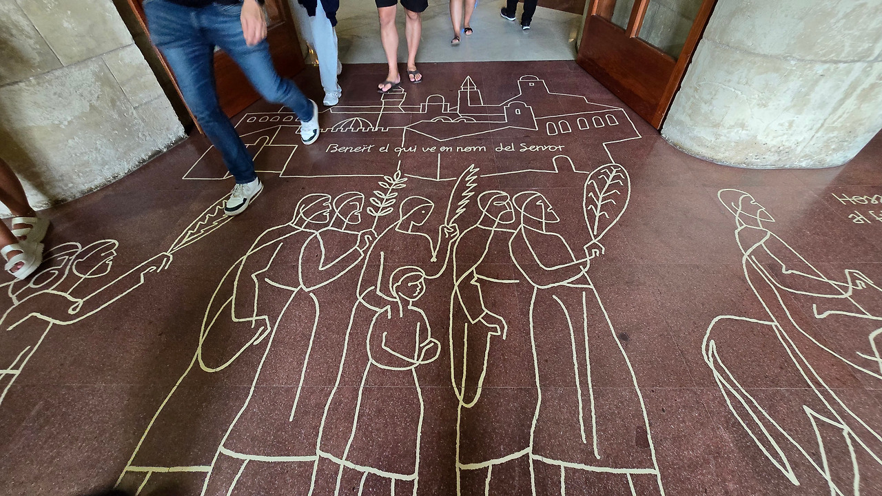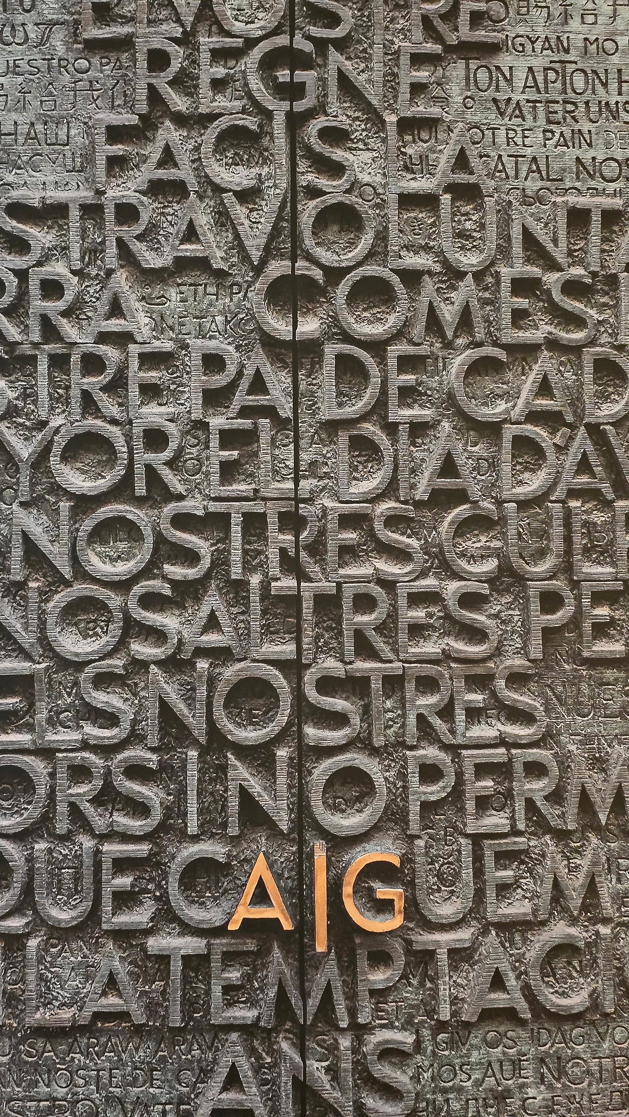 해가 뜨면 오른쪽 측랑의 스테인드 글라스를 통해 파랑과 연두, 초록 등의 빛으로 희망과 탄생을 나타낸 탄생의 파사드와 서쪽으로 해가 지면 왼쪽 측랑의 스테인드 글라스를 통해 빨강, 주홍, 노랑의 빛으로 죽음과 순교를 나타낸 순교의 파사드. 이것 말고 말이다. 원래 가우디가 만들어 놓은 영광의 파사드 모형은 스페인 내전 당시 파괴되었는데, 그걸 복구해서 만드는 영광의 파사드. 이름에 '영광'이 들어가는 파사드라서 실물로 어떻게 구현될지. 이미 완성된 정문 출입구에 50개국 언어로 주기도문의 일부 문장을 새겨, 그걸 발견하도록 한 재미는 미끼 같았다. 나중에 영광의 파사드가 어떻게 구현될지 궁금하라고 말이다.