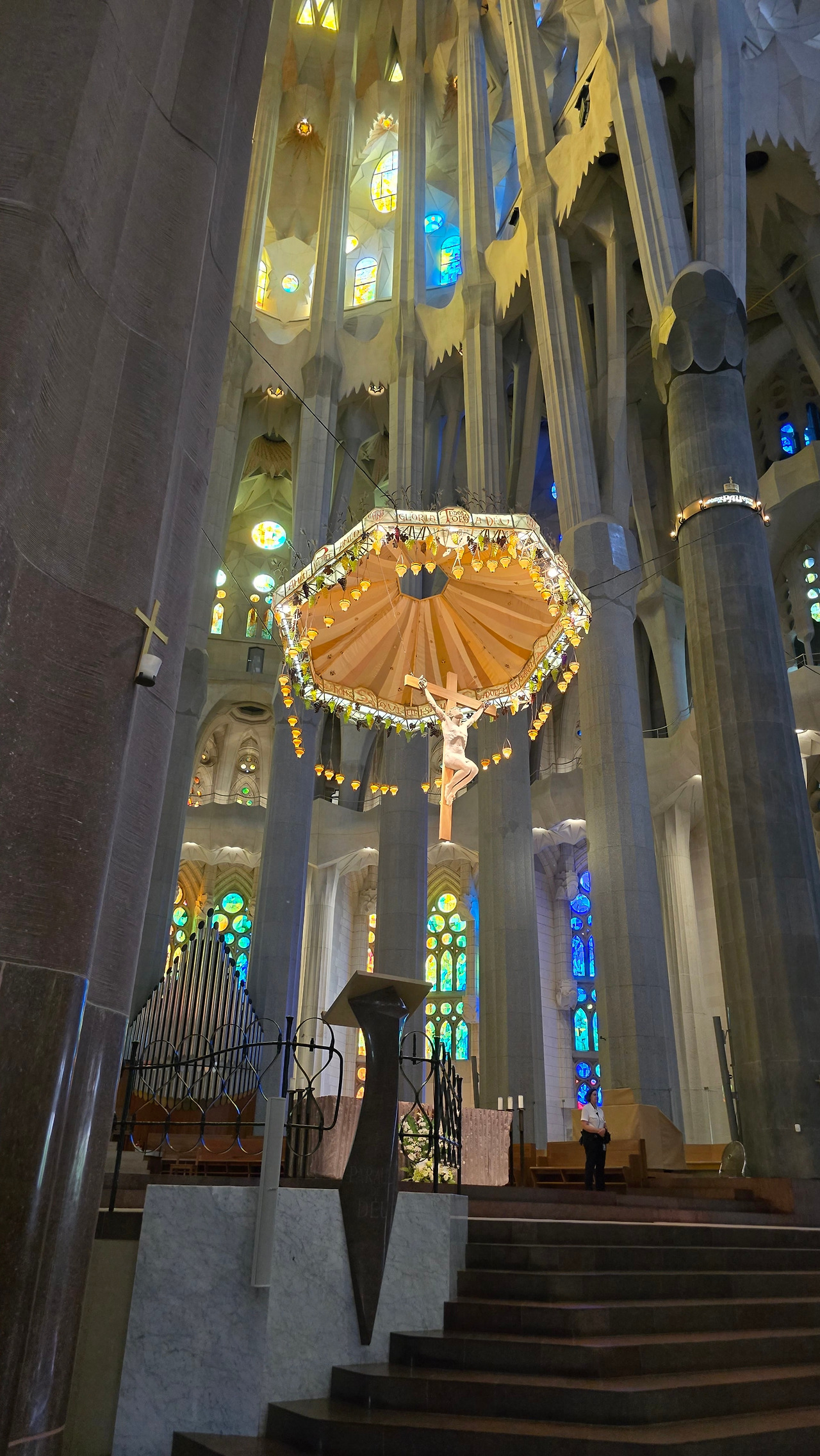 이건 로마에 있는 바실리카 4개 어느 성당도 넘어서지 못하는 것 같은데, 그 빛이 상징하는 중심에 신이 있다는 걸 의미했을 것 같다. 여긴 아침에는 탄생의 파사드를 통해 들어오는 빛의 색감을, 저녁에는 수난의 파사드를 통해 들어오는 빛의 색감을 대비시킨 건 탁월한 선택이었다. 유럽의 성당들이 성당 안에 발타키노나 제대, 조각 등을 엄숙하게 하거나 화려하게 해서 종교의 권위를 내세운다면, 이건 아주 다른 방식이라고 해야겠다. 그렇다고 경외감이 안 들래야 안들 수 없게 만들었으니, 시대가 달라졌기 때문이었을까?