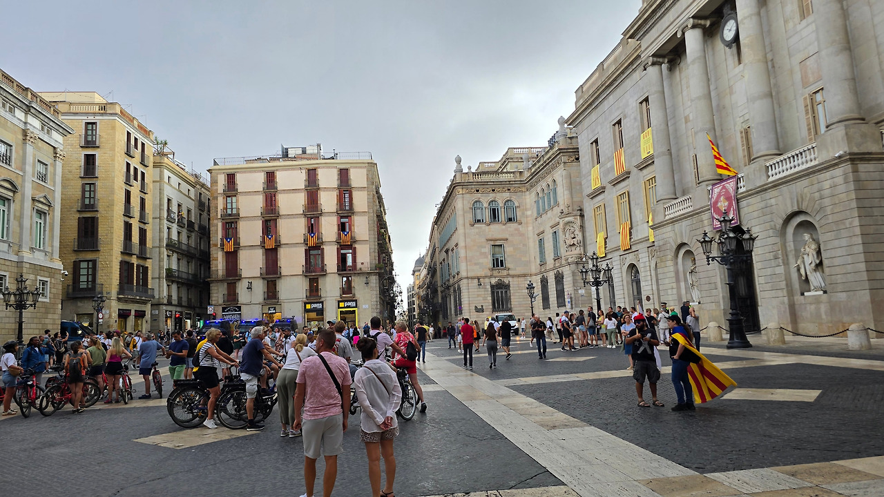 자우메 광장은 여행객이라면 여러 번 가는 곳이다. 그건 바르셀로나 고딕 지구에 있어서다. 그곳엔 바르셀로나 시청과 카탈루냐 정부 건물이 있는데, 그곳에서 그날 알록달록 복장을 한 사람들이 설치고(?) 있었다.
