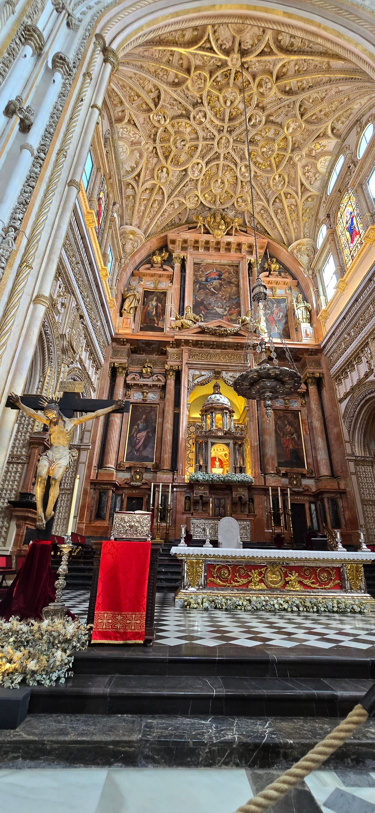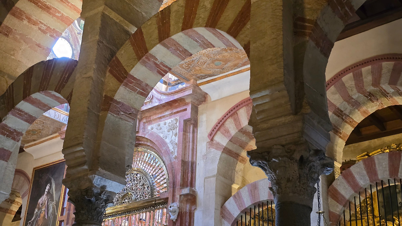 현재 메스키타는 이슬람 모스크가 아니다. 스페인어로 사원을 뜻하는 이곳의 정식 명칭은 코르도바의 산타마리아 성당이다. 밖에서 보면 모스크로 보이지만 안으로 들어오면 엄연히 가톨릭 성당이다. 이곳에서 미사가 열린다. 튀르키예 이스탄불에 있는 아야 소피아 성당이 지금 모스크로 개조되어 이슬람 사원으로 쓰이는 것처럼, 이곳은 그와 정반대라는 면만 다르지만, 여행자에겐 이런 것이 중요할까? 그 어디에도 볼 수 없는 독특함, 유니크!! 한 장소에서 한 공간에서 그리스, 로마, 이슬람, 스페인 가톨릭 문화가 뒤섞인 곳이 또 어디 있을까? 이건 정말 독보적이다.