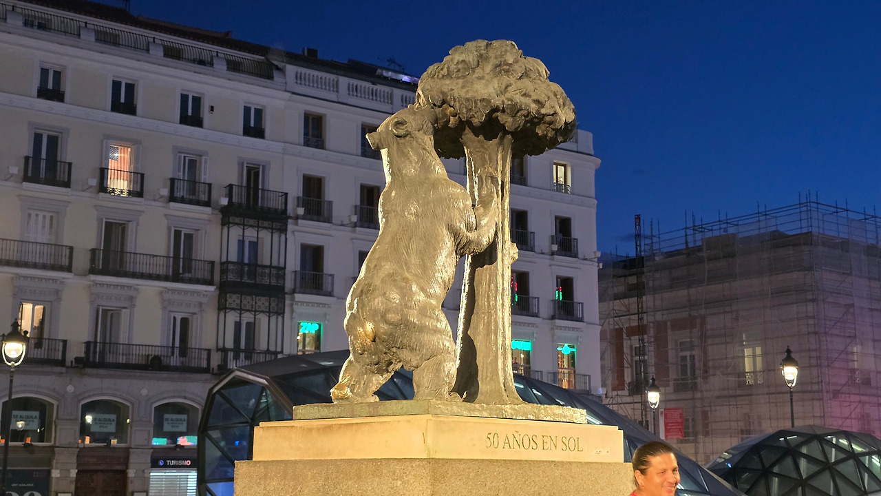 그건 그렇고 광장이 아니랄까 봐 누가 말을 타고 있다. 스페인이 기마의 민족인가? 말을 탄 이는 카를로스 3세라는데, 그이보다 눈에 확 띄는 것이 있었으니. 곰이다. 곰. 곰꼬리가 맨질맨질하는 것 보니 뭔가 이야기가 있나 보다. 꼬리를 만지면 마드리드에 돌아온다던가. 아니면, 곰이 웅녀가 된다던가. 그걸 만지려는 사람들로 인해 줄이 꽤 길다. 꼬리 한번 쓰담쓰담하려고 말이다. 이걸 만든 이유야 당연히 관광목적이겠지만, 거긴 사연이 있다고 한다. 원래 마드리드에 곰이 많이 살았다고 하는데, 산딸기나무(마드로뇨)까지 동상으로 만든 건, 이것이 마드리드의 문장이라고 한다. 문장(紋章).