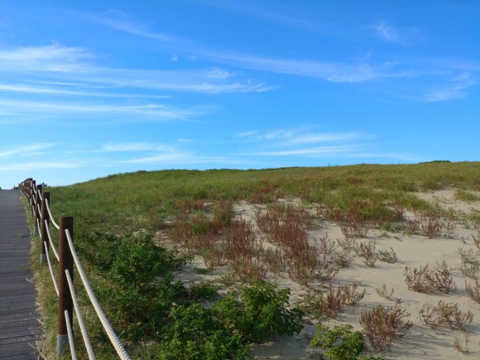 원래 주인공이 나중에 나오던가? 이곳에 오려고 태안에 간 건데. 서해안. 해안선이 길어서, 바람이 많이 불고 모래가 많아서 쌓이고 싸여 이런 모양이라니. 동해안에는 생길 수 없는 지형. 사람 보고 쌓으라고 했으면 했을까? 신이 쌓았다고 해도 시간이 필요했었을.... 이곳 신두리 해안사구 길이는 약 3.4km이고, 폭이 약 0.5~1.3km의 모래언덕이다. 육지와 바닷가 사이. 뭐, 이곳도 당연히 육지지만, 이런 곳 옆에 바로 도시가 만들어지기는 어려웠을 터. 바람에 날리는 모래 때문에 살기도 어려웠을 터. 한반도에서 빙하기 때부터라는데 빙하기? 1만 5천 년부터 서서히 형성되었고, 북서 계절풍을 직접 받는 지역에, 강한 바람에 의해 모래가 해안가로 운반되면서 오랜 기간 모래언덕이 만들어진 곳. 그래서 동해나 남해에는 이런 지형이 어려웠을 것이다. 북서 계절풍이란다. 북동풍이 아니라.
