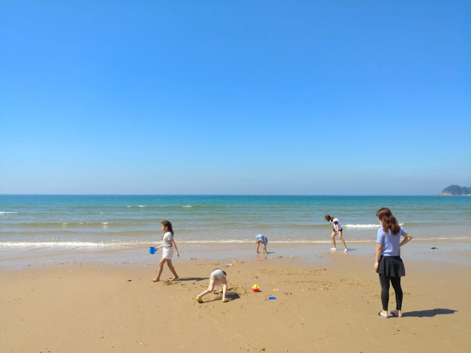 이곳에 올 때 철 지난 바닷가라서 썰렁할까 했더니, 아니다. 제법 사람이 많다. 아직 계절이 여름과 가을 사이여서 그런 것인가? 지난여름 휴가를 가지 못한 사람들이 와서 그런지 해수욕장 분위기가 밝다. 이런 이유는 가족단위로 노는 사람들이 많이 보여서인 것 같기도 하다. 바로, 눈앞에 선 엄마까지 포함해서 다섯 명의 여성들이 모래를 나르느라 정신이 없어 보인다.
