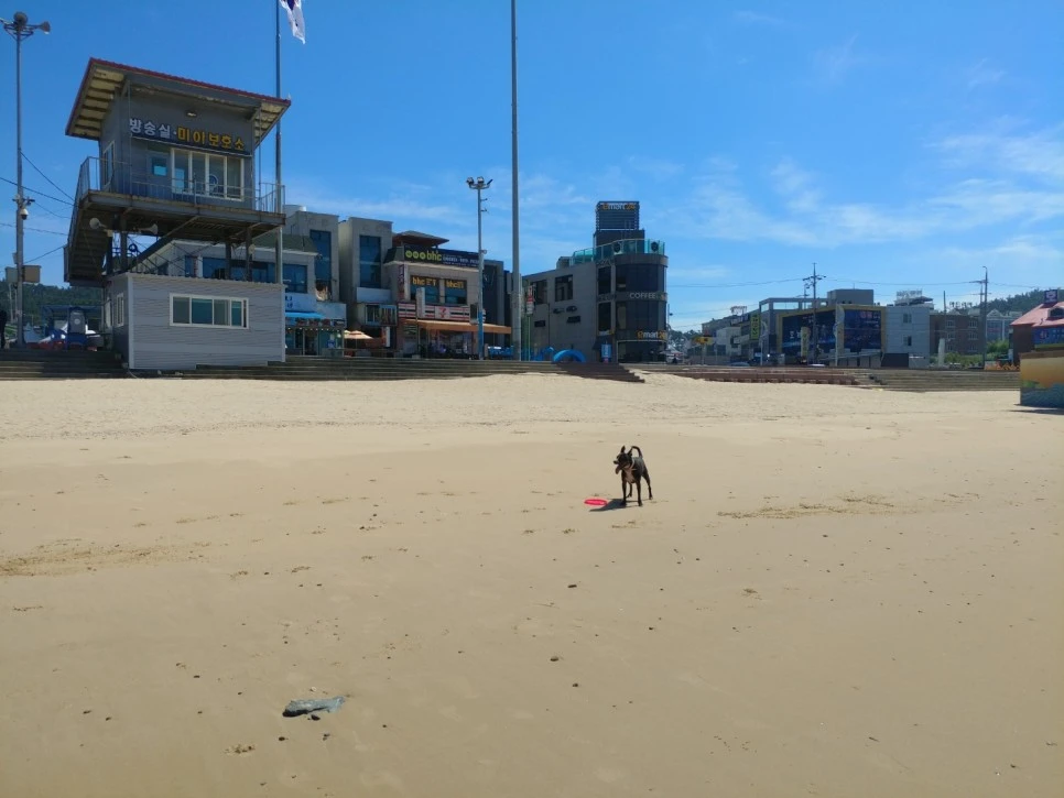 거기에 원반 던지기. 아주 열심이다. 한 번도 아니고. 강아지 한 마리가 주인이 던지면 헥헥거리고 떨어진 원반을 주워서 발을 몸에 담근 후 좀 쉬었다 주인한테 가져다준다. 나라면 안 할 텐데... 저게 주인이라고 똥개 훈련시키나 하고 반발이 심했을 듯... 맛있는 것을 얼마나 주려나. 다행이다. 개가 아니라서... 더 인상적인 것은 주인의 체격이다. 헐크 같다. 헬스클럽에서 만든 몸인 듯. 그러니 상체를 드러내고 개 하고 놀겠지? 얼굴? 멀리 떨어졌지만 그래도 잘생겼던 것 같다. 여성이라면 눈여겨봤을 테지만. 남자라서. 그러고 보니, 여기저기 강아지를 데리고 온 가족이 많이 눈에 띈다. 그래서 만리포가 어쨌냐니까? 따봉이다. 바닷가는 동해나 남해라는 편견이 가시는 날이었다. 그만큼 만리포 바닷가가 좋았다. 더불어 공짜라서 그랬을 텐데, 전망대에 올라 저 멀리 시선이 닿는 곳까지 시원스레 다 내려다보았다.