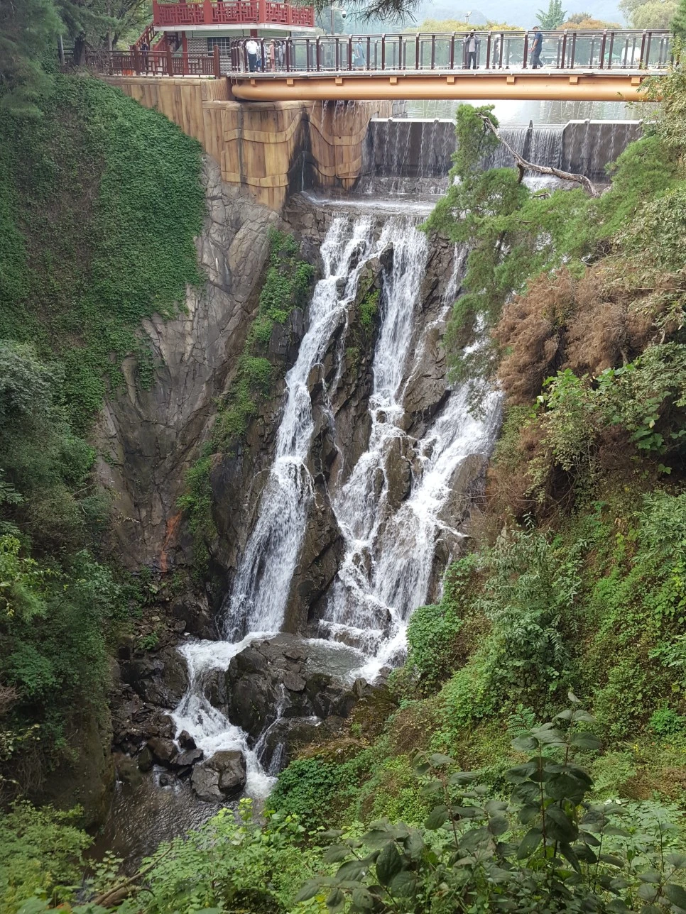 그런데 폭포다. 그냥 규모가 어설픈 폭포가 아니다. 높이가 얼마 될까? 여기에 폭포를 위에서 내려다볼 수 있게 해 놨다. 유리로 만들어서 일부에서는 폭포를 바로 위에서 내려다볼 수 있다. 이 또한 신기했지만 역시 폭포는 장쾌하게 떨어지는 물줄기를 보는 맛이다.