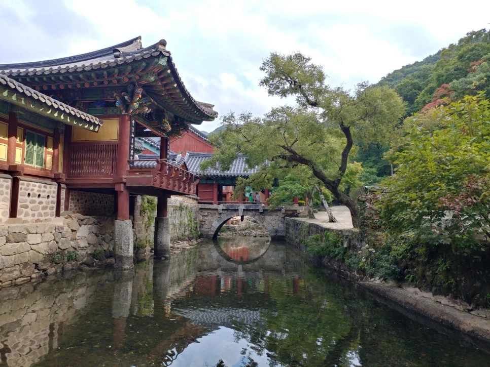 둘 다, 그 유명한 사진 포인트. 어느 게 더 멋있을까? 어찌 비교할 수 있으랴. 승선교는 다리만 덜렁 있어 좀 쓸쓸해 보이기는 하다. 대신, 우화각은 밑에 제짝인 삼청교가 튼튼하게 받치고 있으면서 법당들과 연결되어 있다. 그래서 영화 '헤어질 결심'에도 나온다고 한다. 다리가? 영화를 봤어야지. 그래도 좀 생각해 보면, 누각까지 깔 맞춤한 능허교가 더 조화롭게 느껴진다. 그런데, 뭔가 빠진 것 같다. 그래, 그건 시간이다. 너무 일찍 온 것이다. 승선교는 정말 늦가을이나 초겨울, 나뭇잎이 더 이상 나무에 남아있기 싫어서 몸부림칠 때 와야 제멋이고, 우화각도 누각 앞에 늘어선 나무가 '나, 돌아갈래'하고 외칠 때 돼야 풍취가 제대로인데, 아쉽다. 그것도 많이.